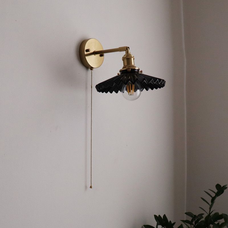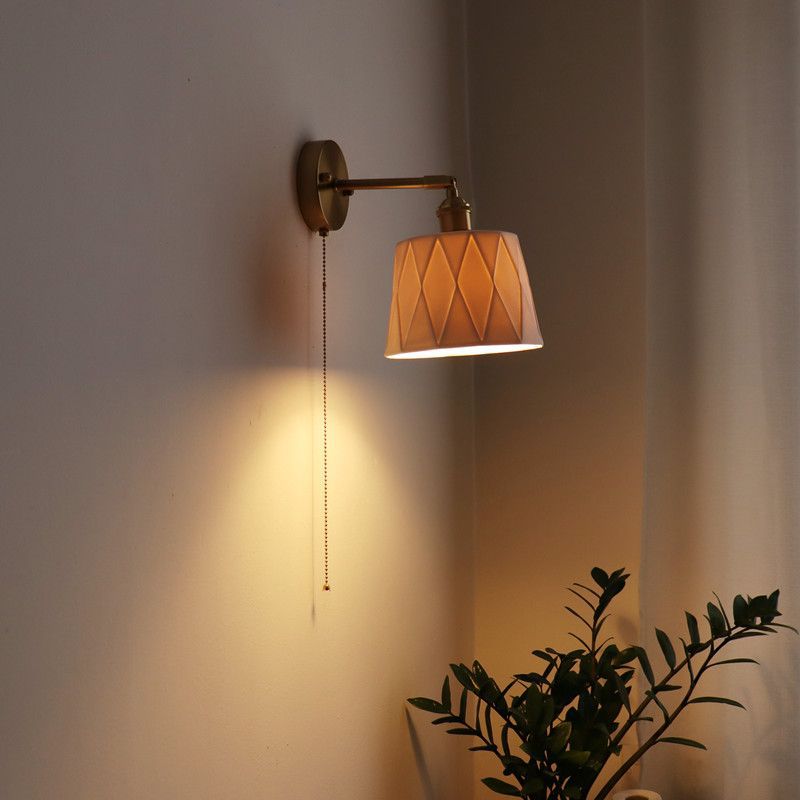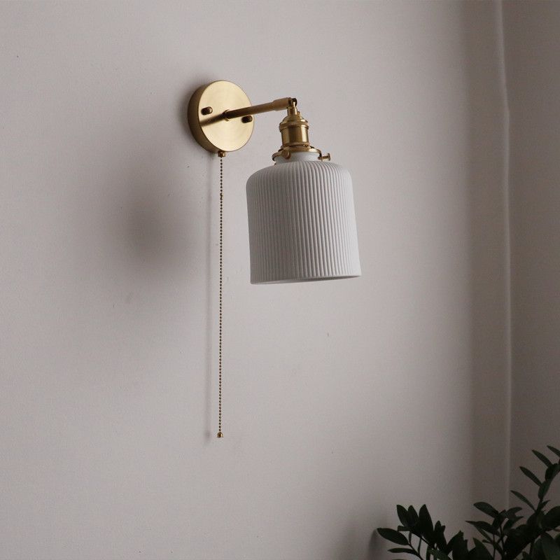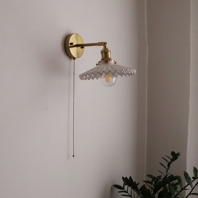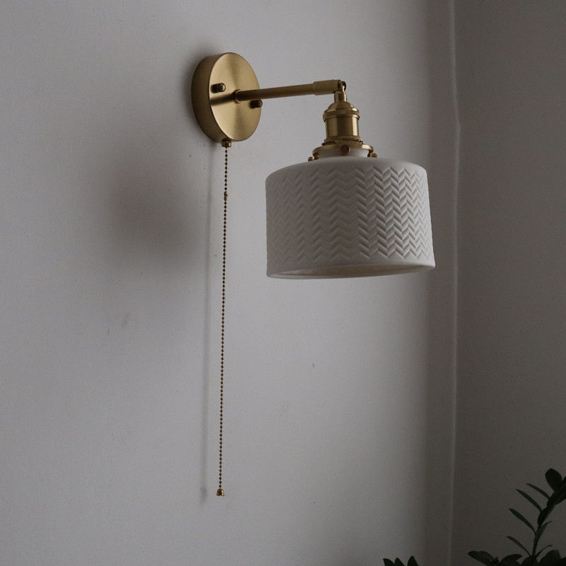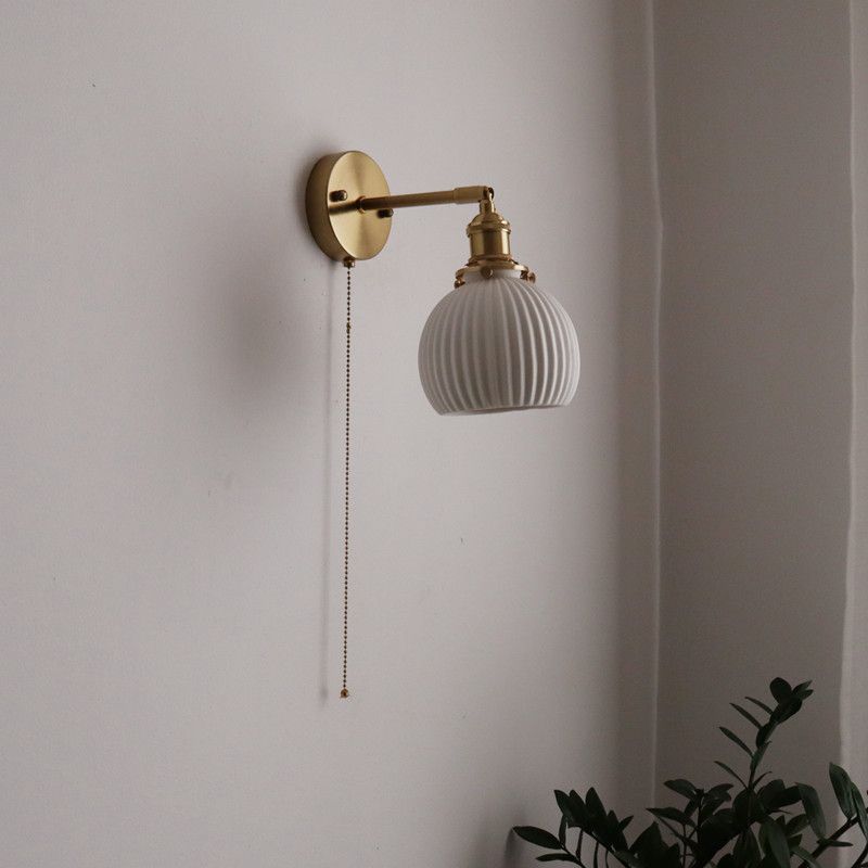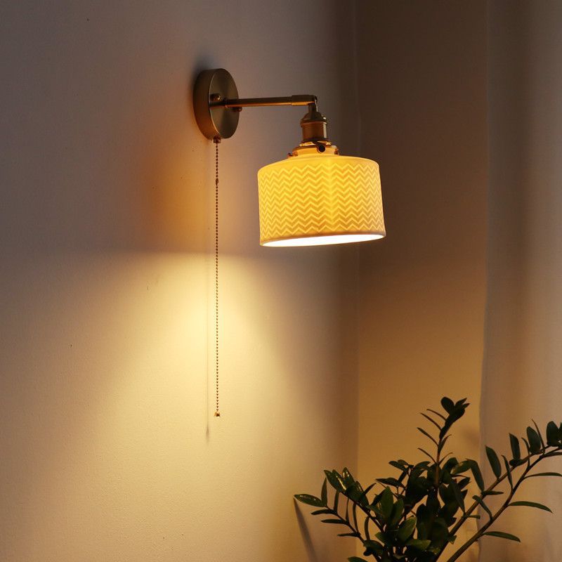 일본 복고풍 황동 세라믹 벽 램프 침실 머리맡 램프 욕실 옷장 배경 벽 당김 스위치 램프스토어 가기
