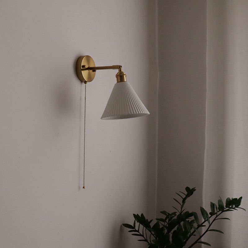 일본 복고풍 황동 세라믹 벽 램프 침실 머리맡 램프 욕실 옷장 배경 벽 당김 스위치 램프