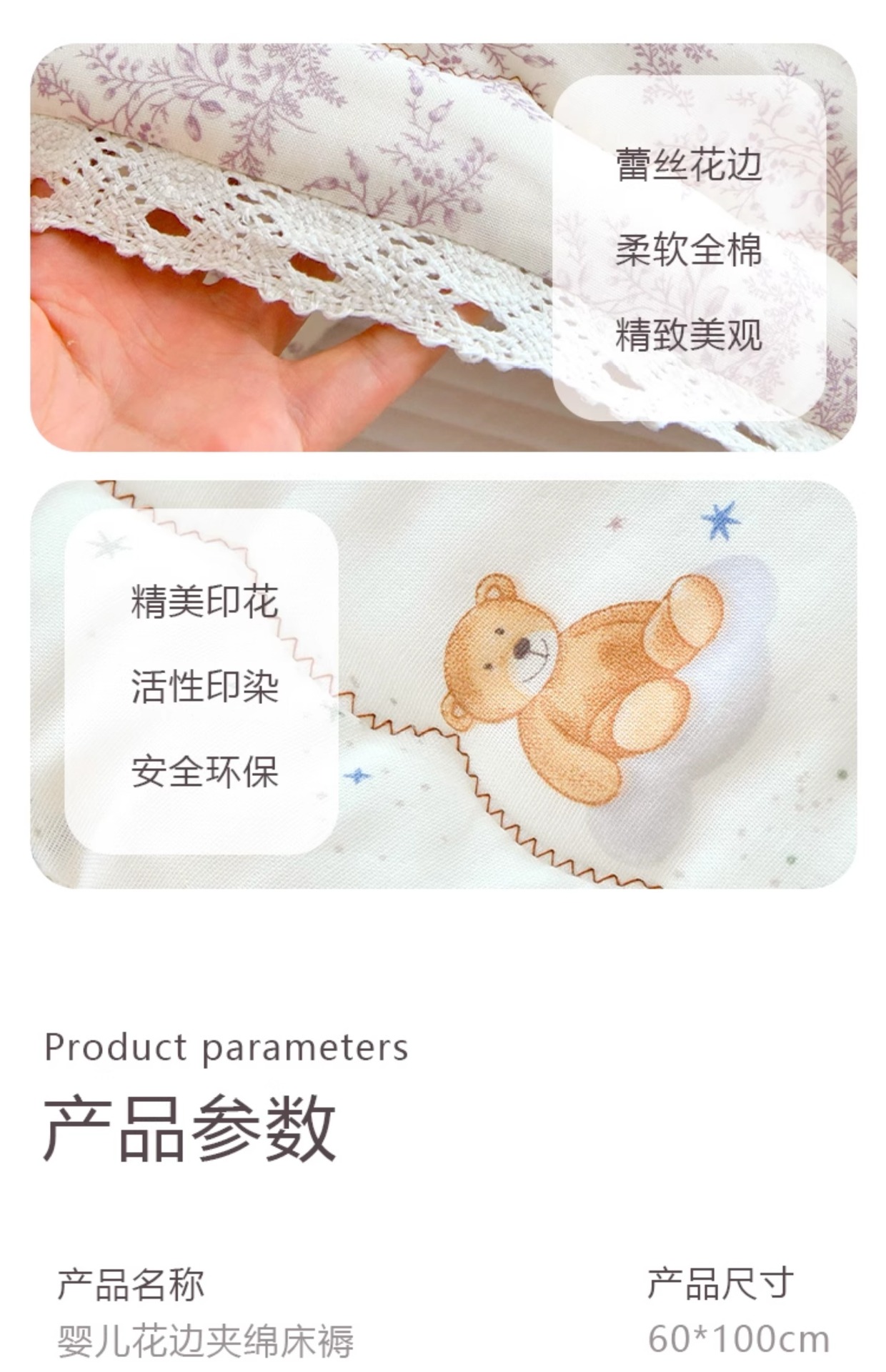 甄选全棉纱布面料天然柔软,亲肤透气
