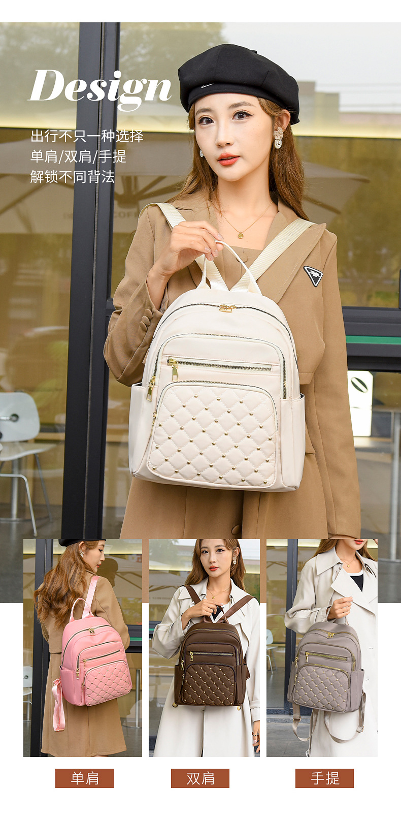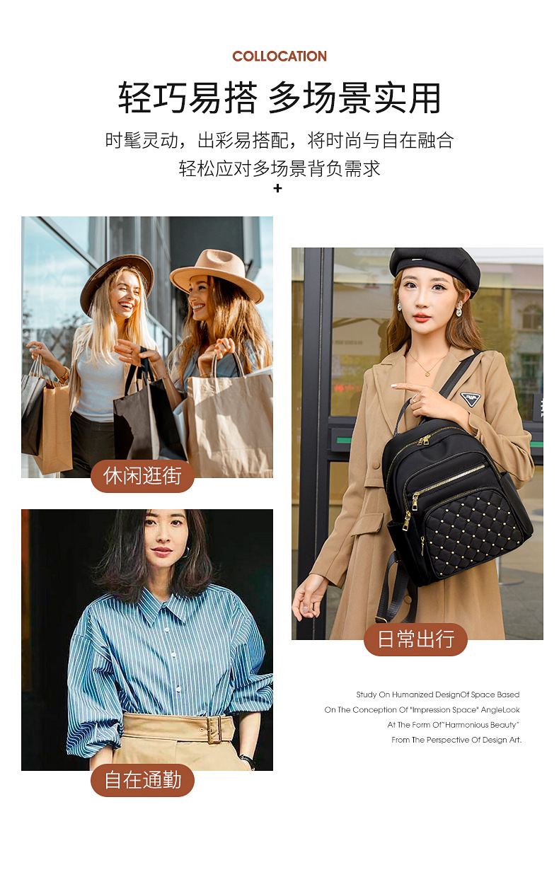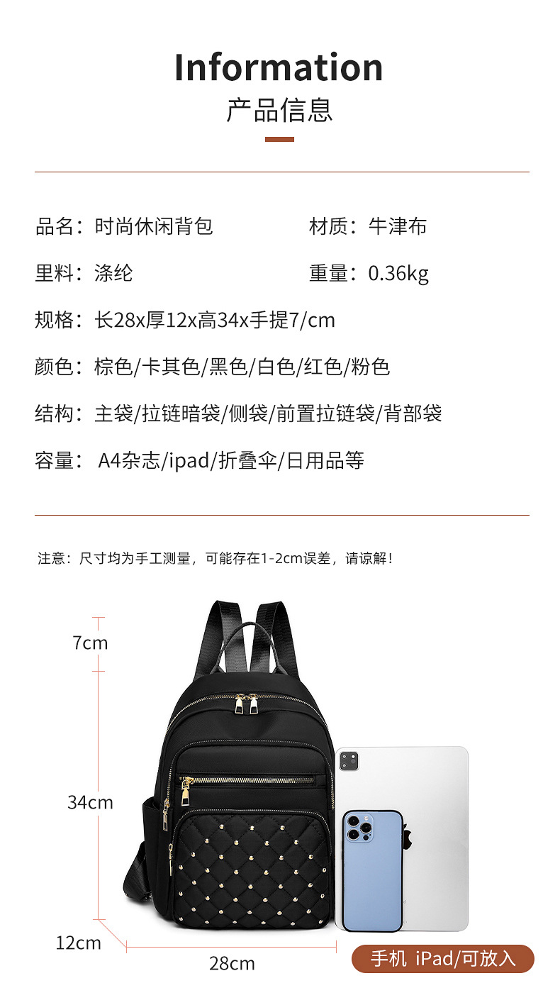 여성을 위한 국경 간 인기 마름모 자수 리벳 배낭 2025 새로운 스타일 패셔너블하고 간단한 외출 통근 캐주얼 다용도스토어 가기