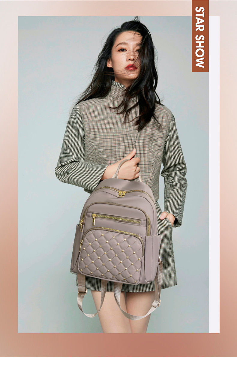 여성을 위한 국경 간 인기 마름모 자수 리벳 배낭 2025 새로운 스타일 패셔너블하고 간단한 외출 통근 캐주얼 다용도