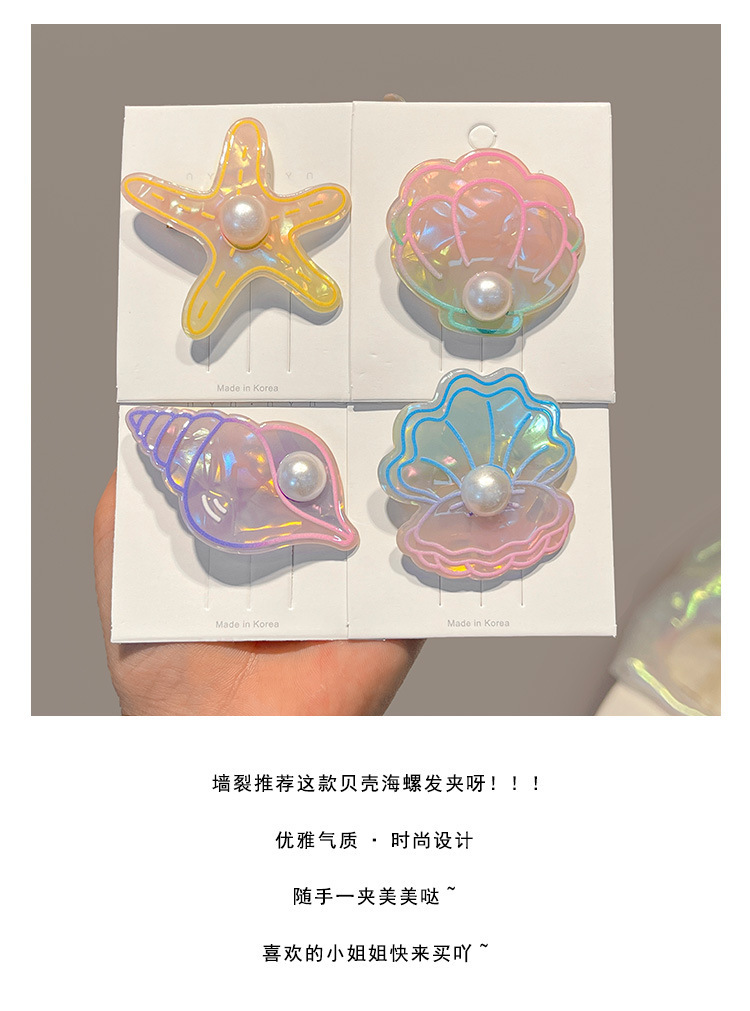 심포니 불가사리 껍질 머리핀, 달콤한 소녀 머리핀, 오리발 클립, 진주 머리핀, 앞머리 클립, 귀여운 해양 모자스토어 가기