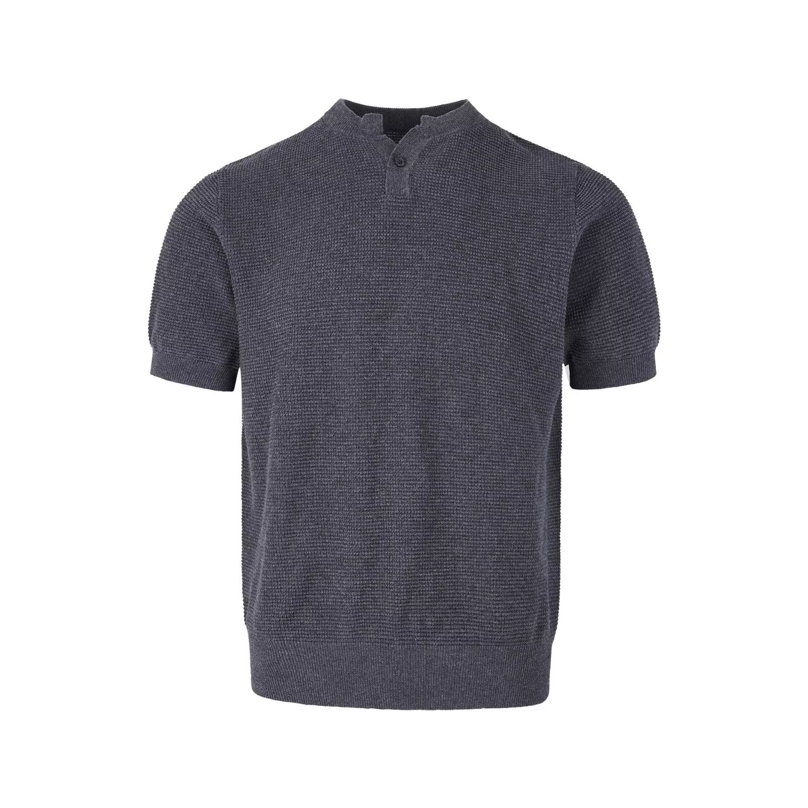 아메리칸 헨리 칼라 니트 반팔 티셔츠 남성 여름 올드 머니 스타일 와플 통기성 폴로 셔츠 가볍고 성숙한 스타일 반소매