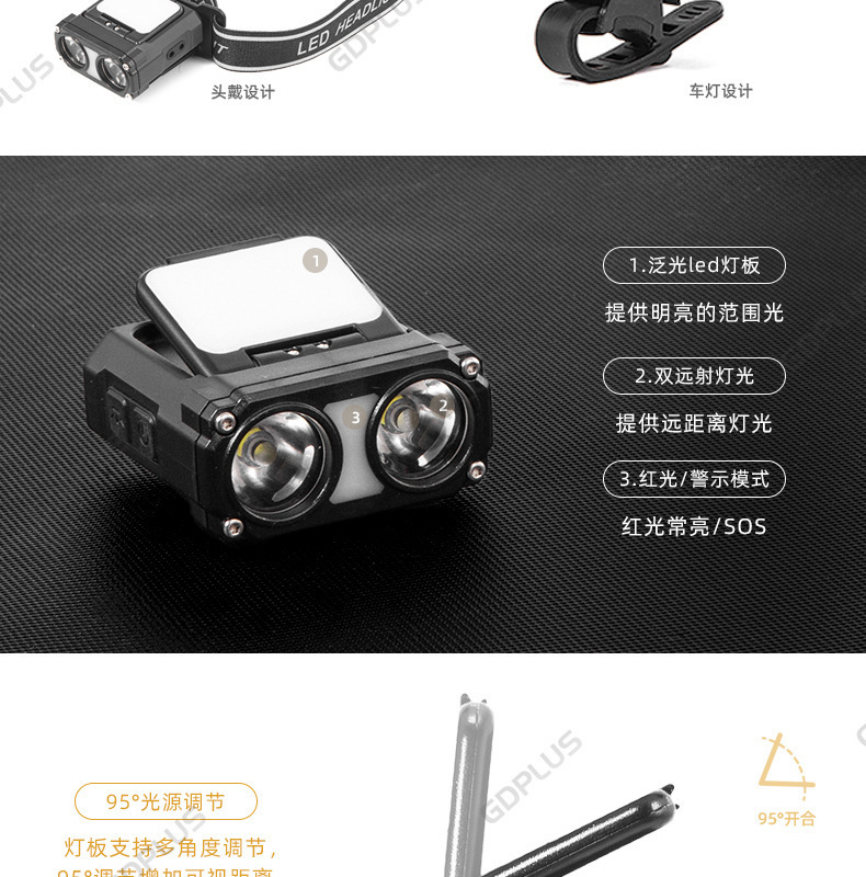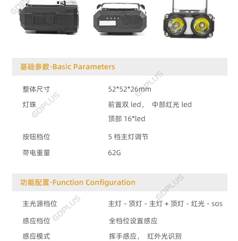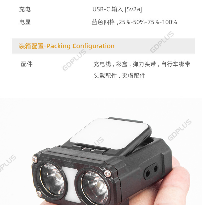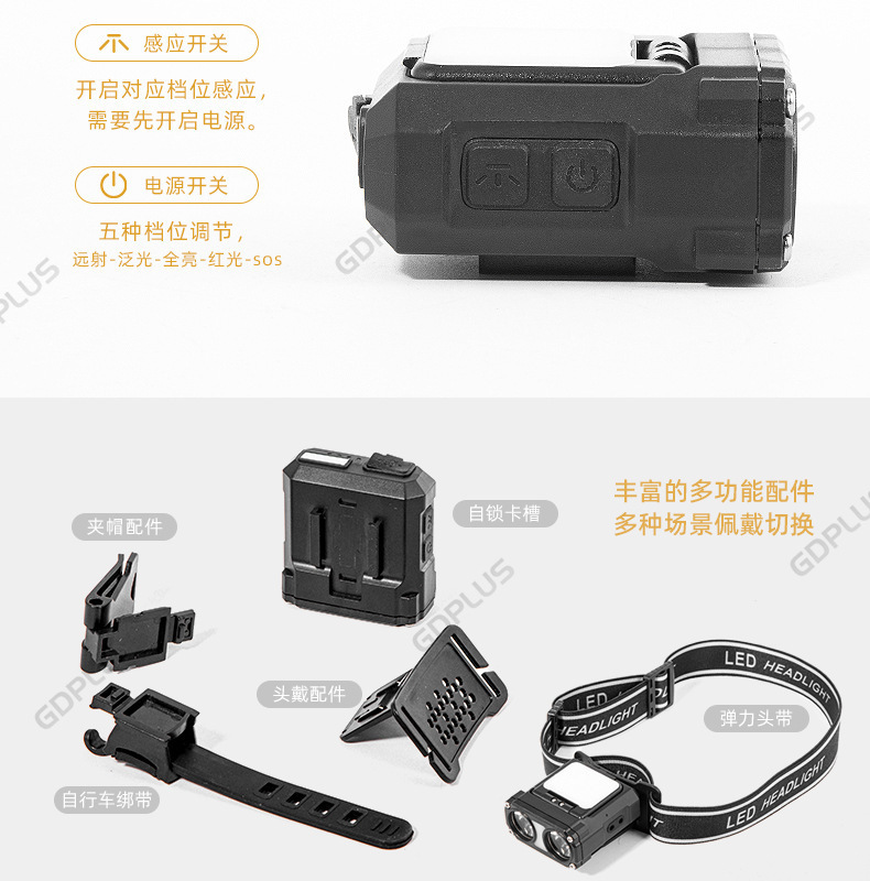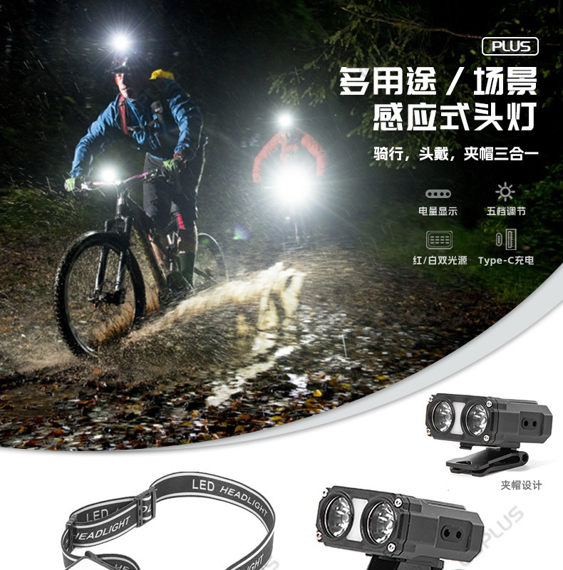 국경 간 새로운 다기능 센서 헤드 라이트 USB 자전거 라이트 LED 클립 캡 라이트 사이클링 손전등 낚시 야외