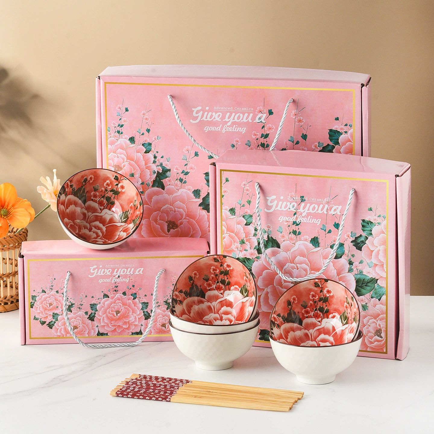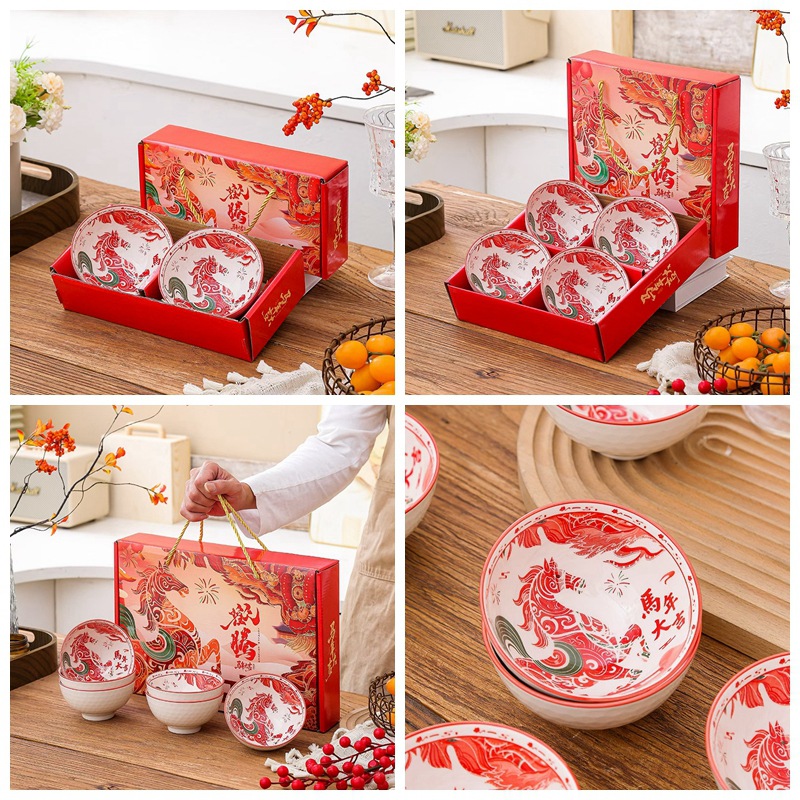 선물 그릇 세트 동백 세라믹 식기 세트 그릇 선물 상자 세일 오프닝 선물 기념품 그릇과 젓가락 세트 그릇