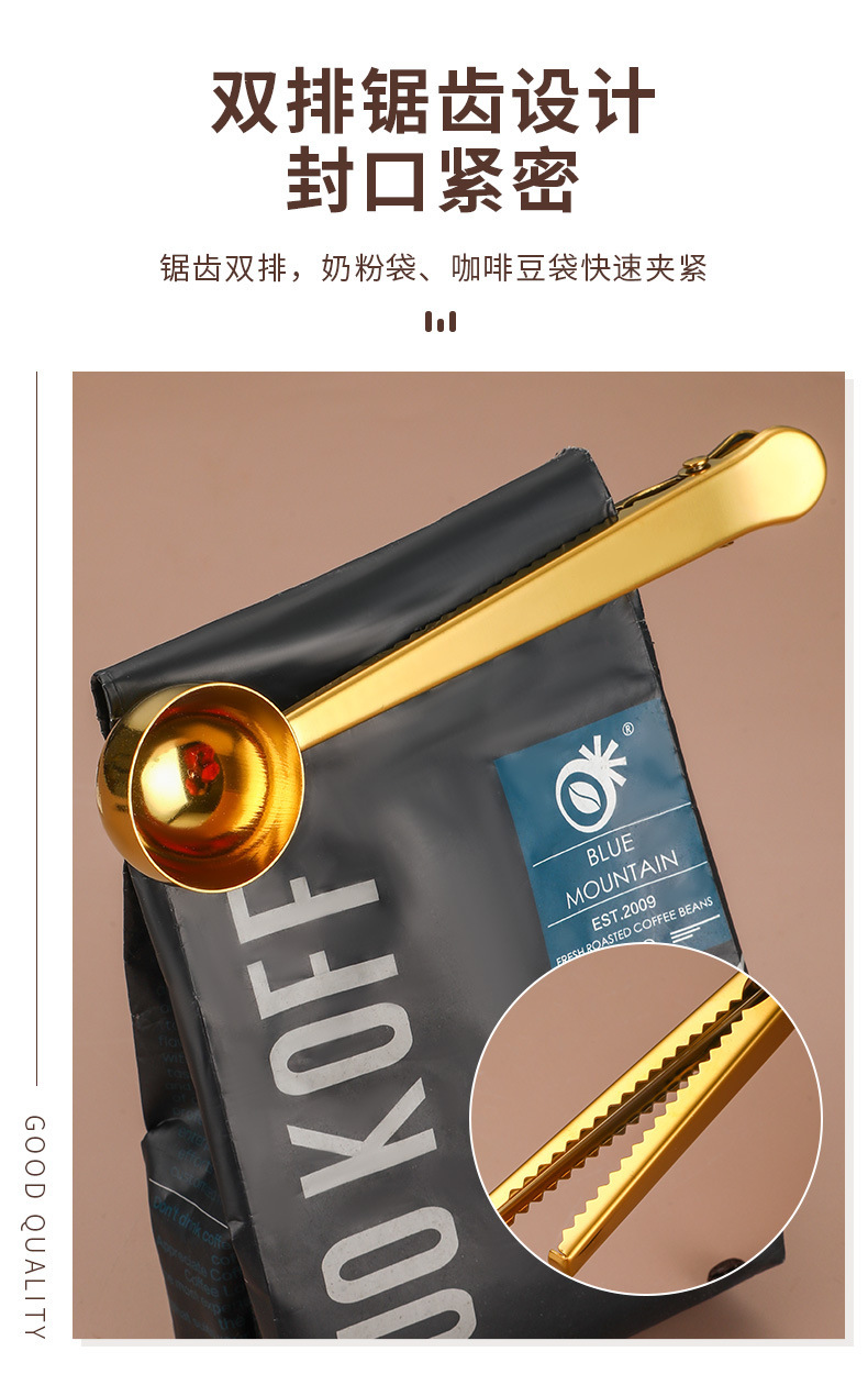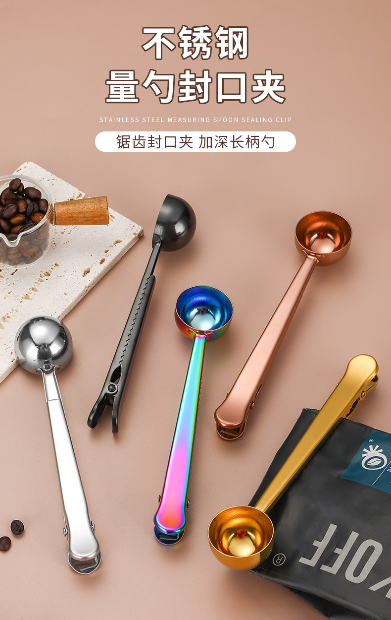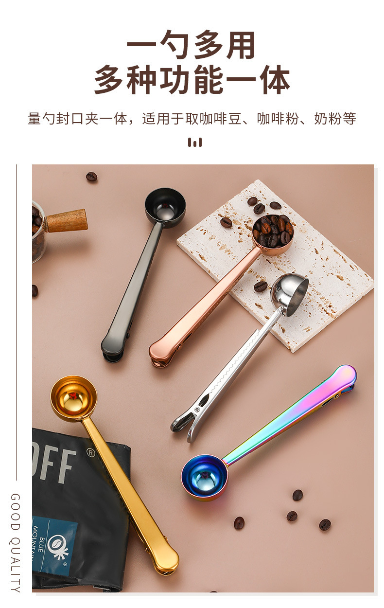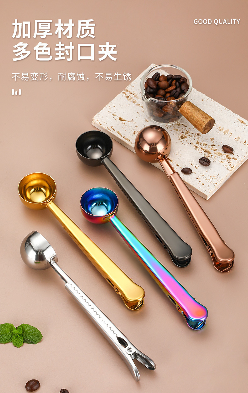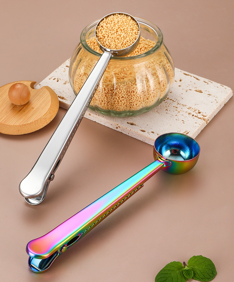 다기능 식품 밀봉 클립, 밀봉 클립 겸용 분유 계량스푼, 2-in-1 계량스푼, 스테인리스 커피스푼, 계량스푼스토어 가기
