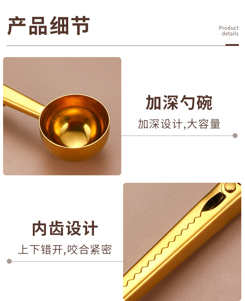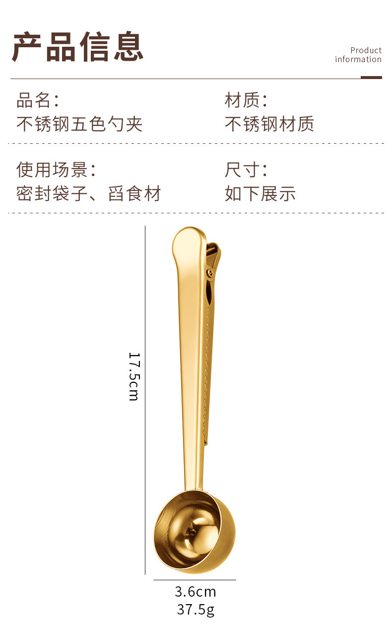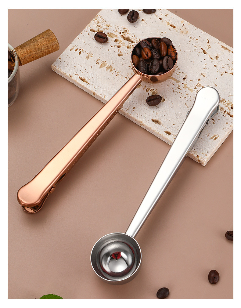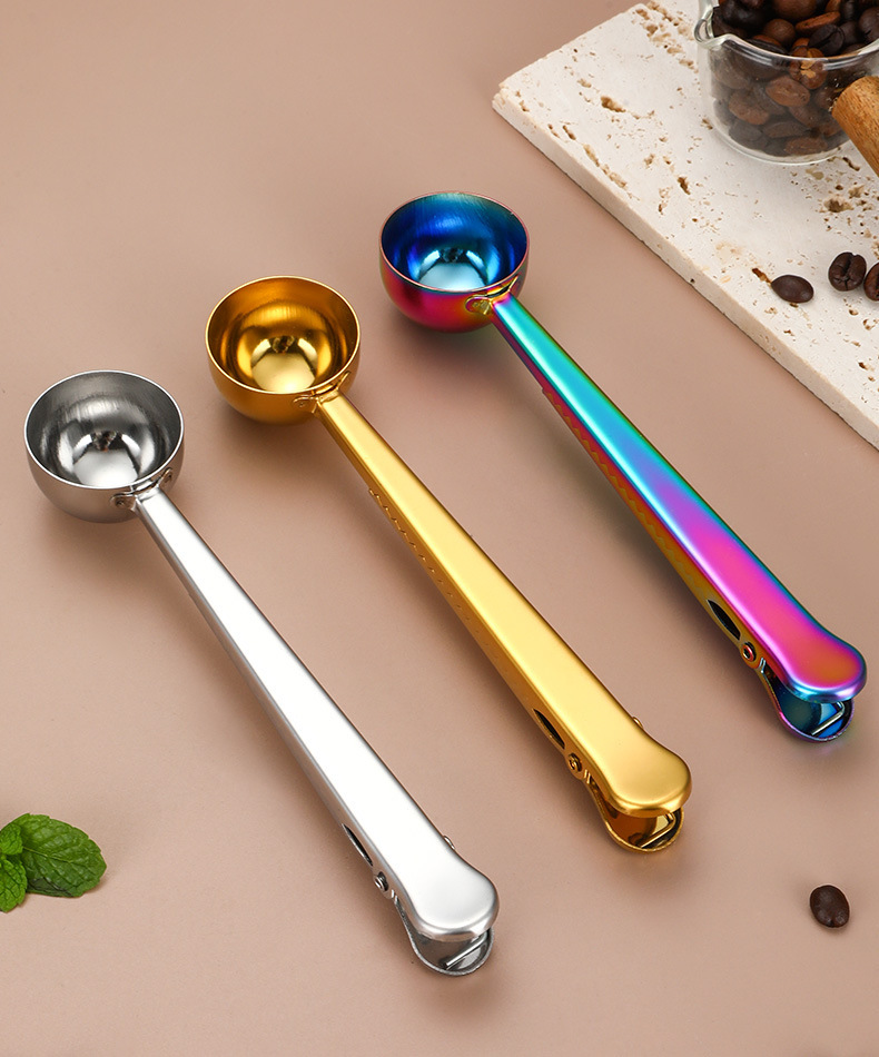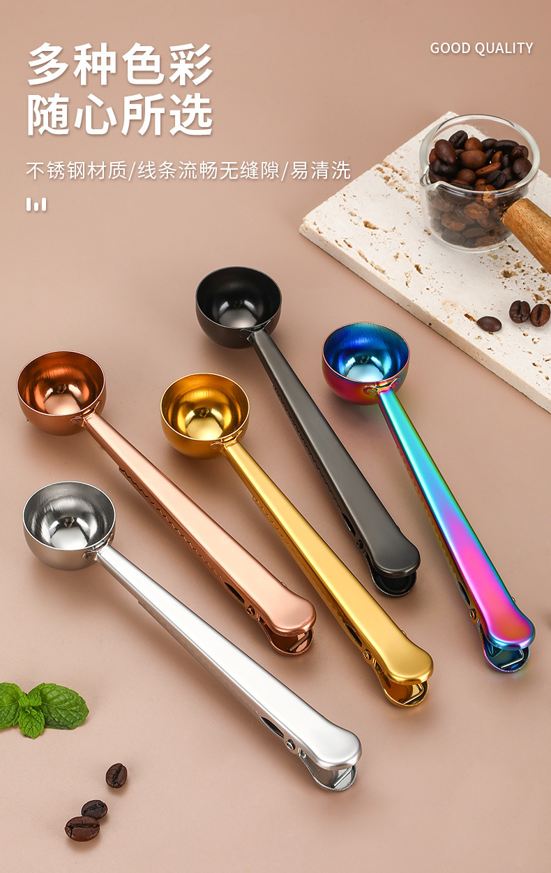 다기능 식품 밀봉 클립, 밀봉 클립 겸용 분유 계량스푼, 2-in-1 계량스푼, 스테인리스 커피스푼, 계량스푼스토어 가기