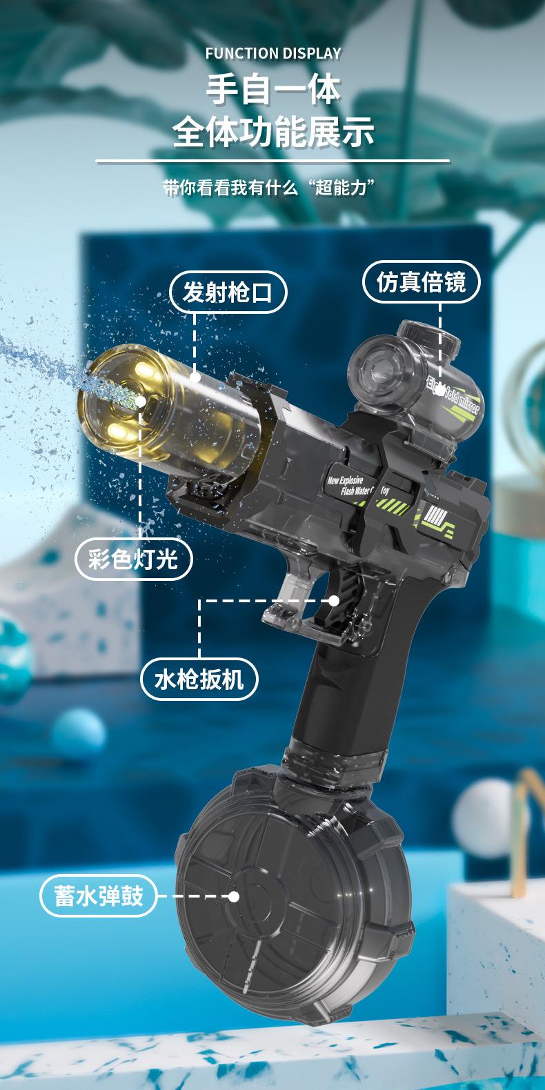 인기있는 불꽃 작은 얼음 쥐 전기 물총 연결 리필 펄스 고속 연속 물총 어린이 물총 장난감스토어 가기