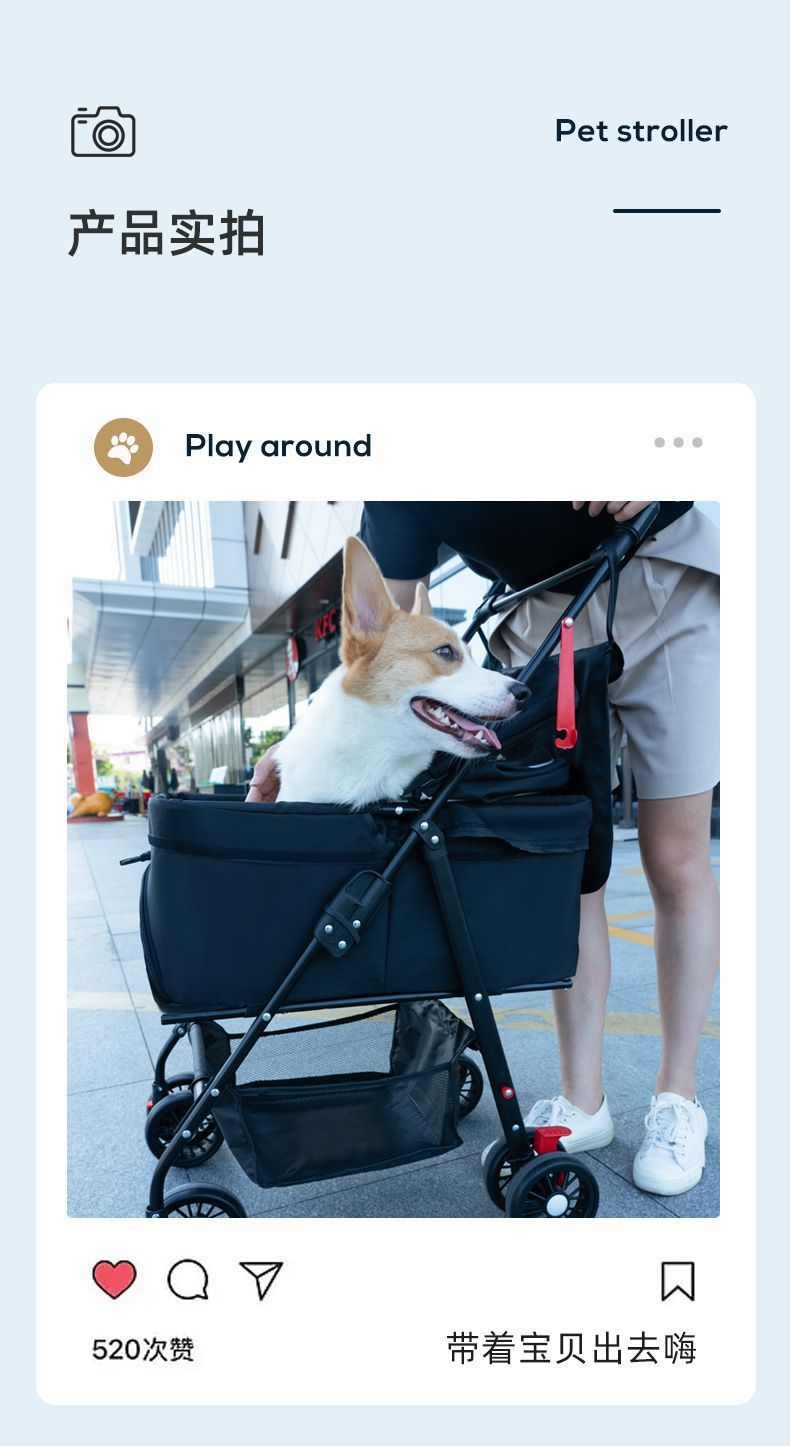 애완동물 유모차, 개와 고양이 테디 유아용 유모차, 소형 애완견 유모차, 경량, 접이식 및 분리 가능스토어 가기