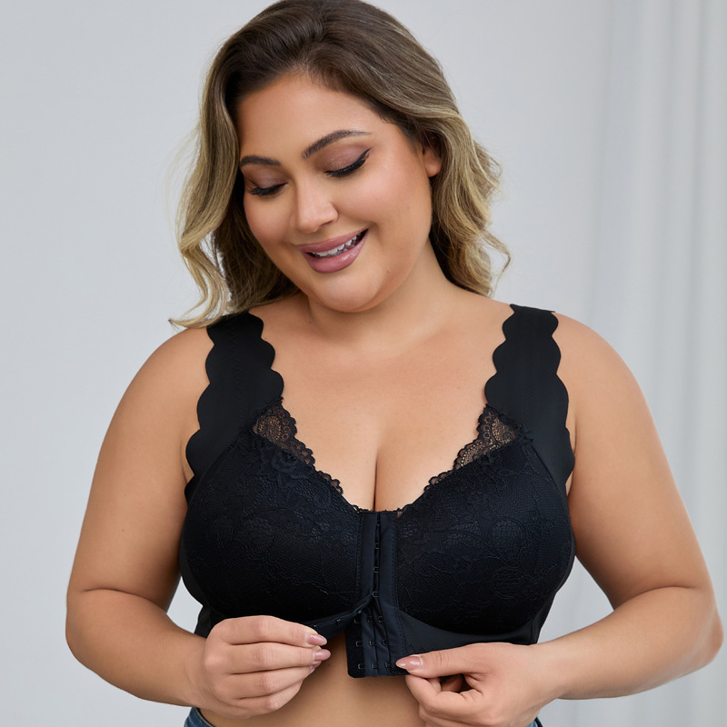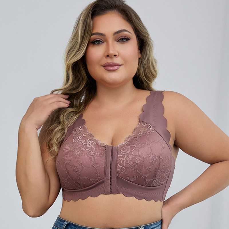 크로스보더 프론트 버클 레이스 속옷 얇은 고정 컵 아름다운 등 프론트 버클 조끼 여성 플러스 사이즈 푸시업 브라스토어 가기