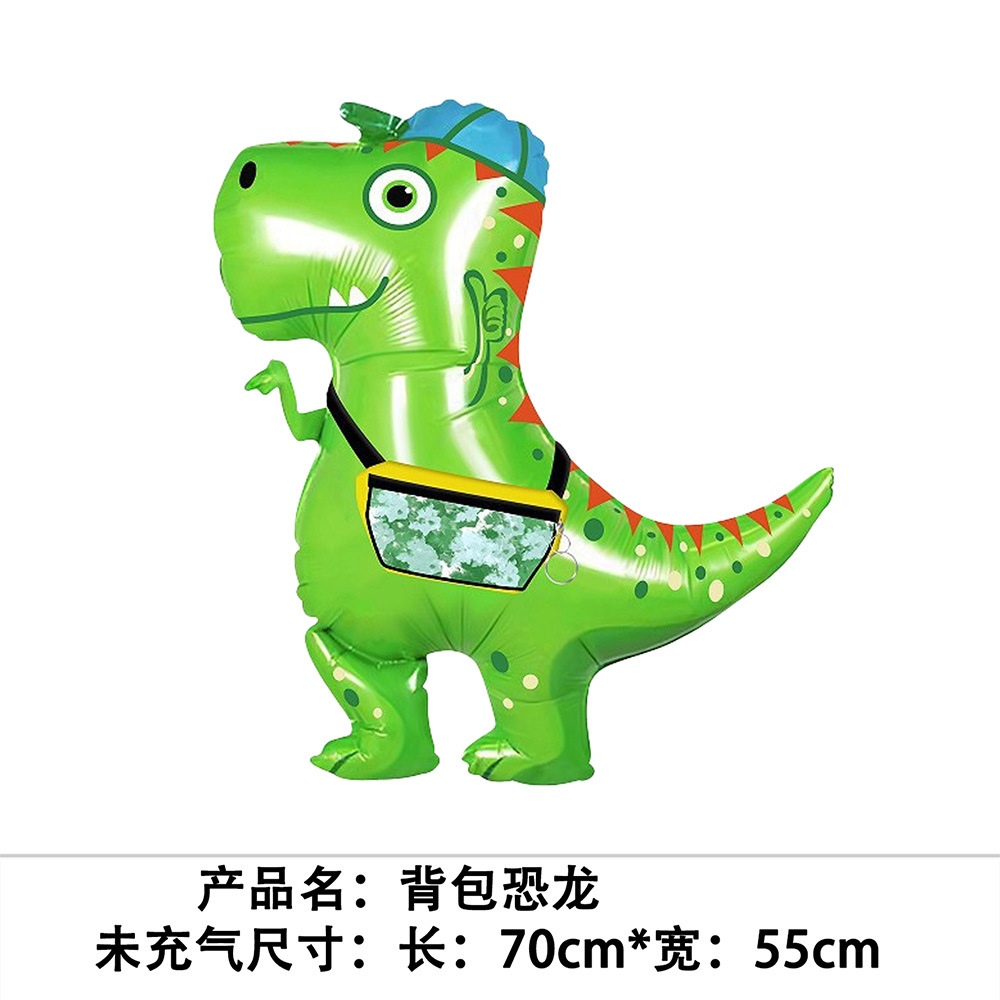 Q 버전 만화 공룡 알루미늄 필름 풍선 어린이 생일 장식 티라노사우루스 긴 목 공룡 숲 파티 풍선 도매스토어 가기