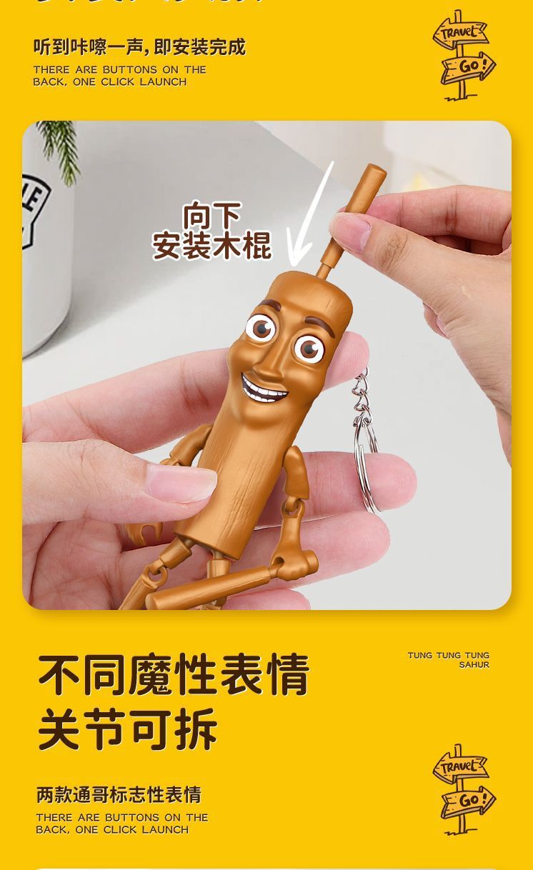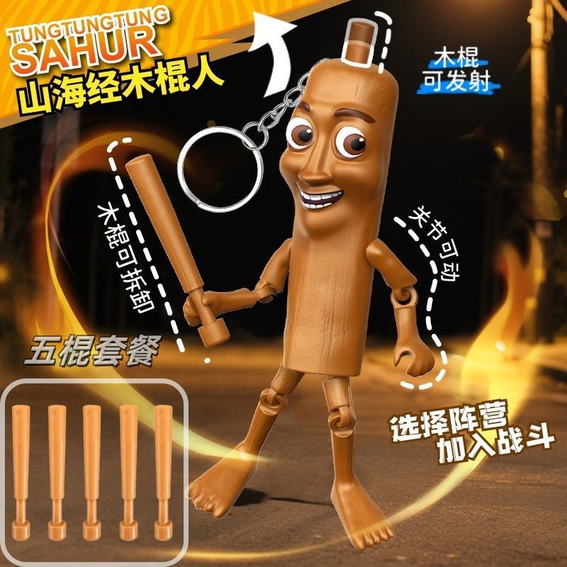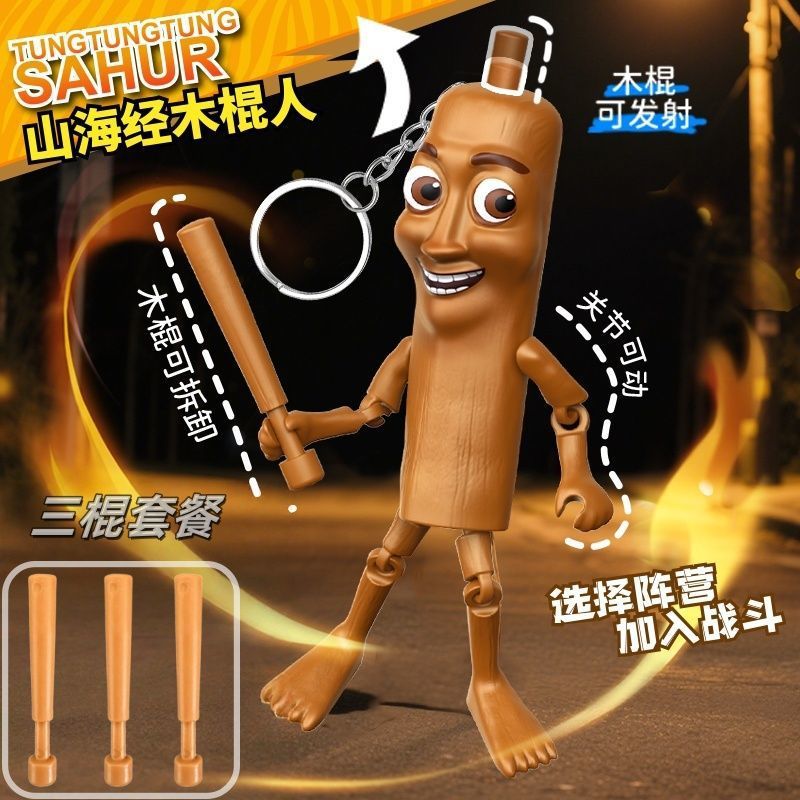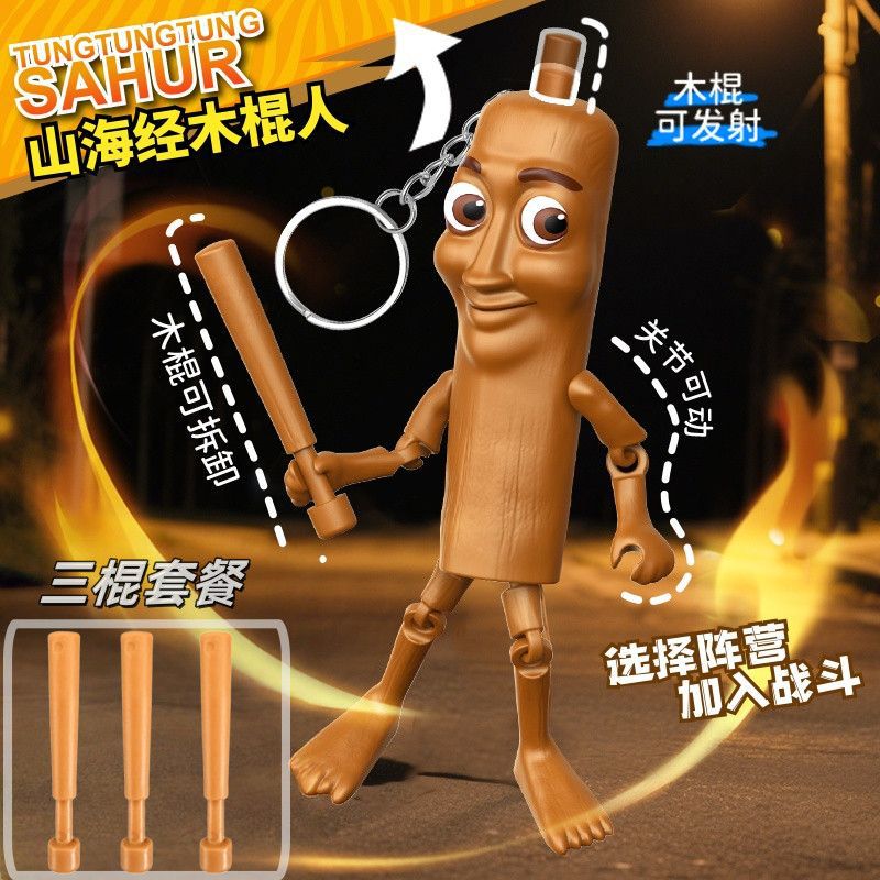 TungTungSahur 통통통 나무 막대기 Ren Shan Hai Jing 손으로 만든 장난감 모델 장식품 인형 어린이 유행 장난감스토어 가기