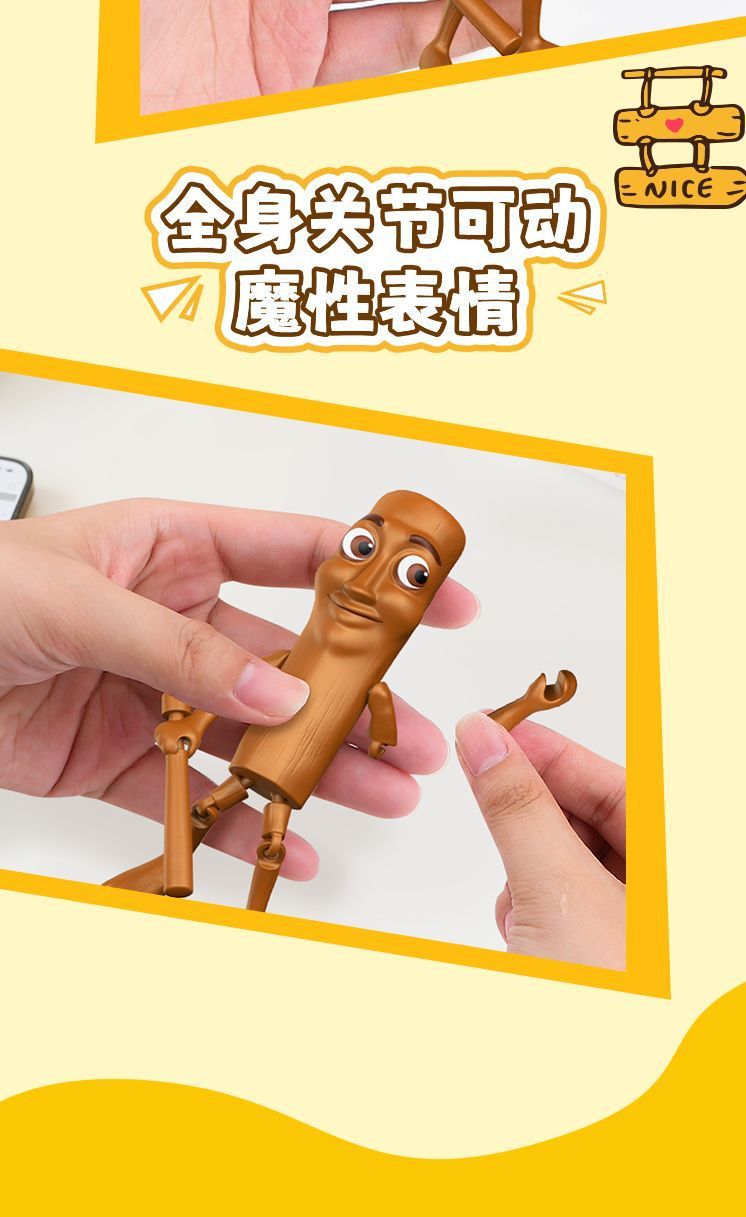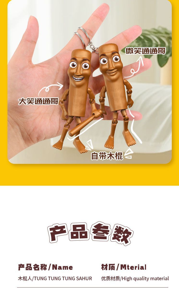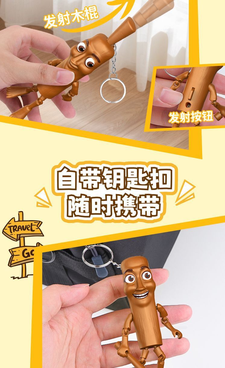 • 단일 나무 막대기 [통통 형제 없음] - 웃음 스타일 - 무료 열쇠 고리 [인형의 손과 발이 움직일 수 있음]