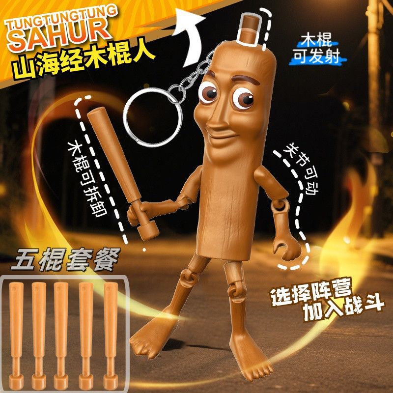TungTungSahur 통통통 나무 막대기 Ren Shan Hai Jing 손으로 만든 장난감 모델 장식품 인형 어린이 유행 장난감
