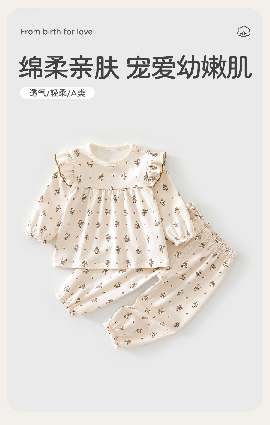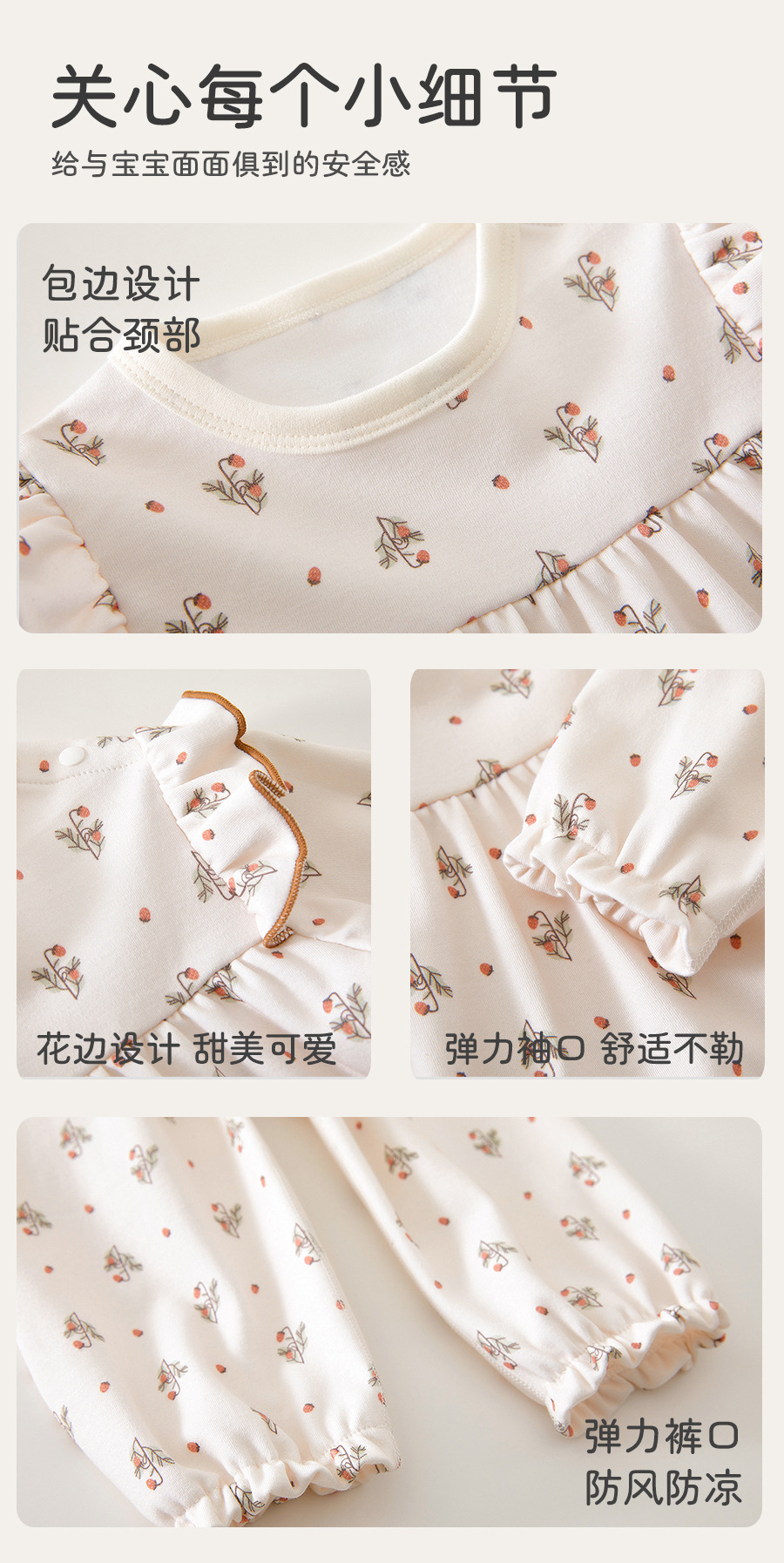 아기 속옷, 순면 잠옷 세트, 긴팔 바닥 투피스 세트, 사계절 외출용 귀여운 아동복