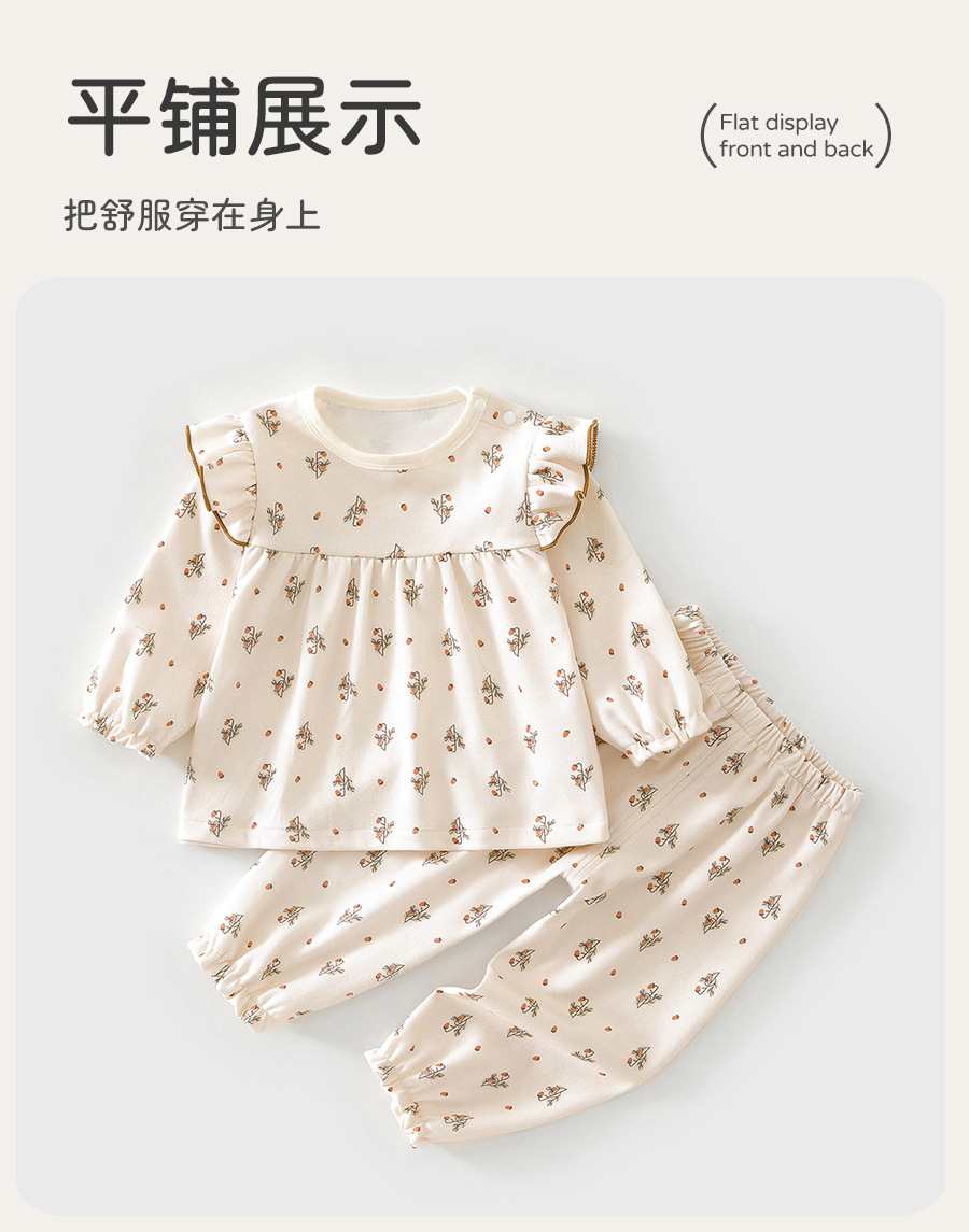 아기 속옷, 순면 잠옷 세트, 긴팔 바닥 투피스 세트, 사계절 외출용 귀여운 아동복스토어 가기