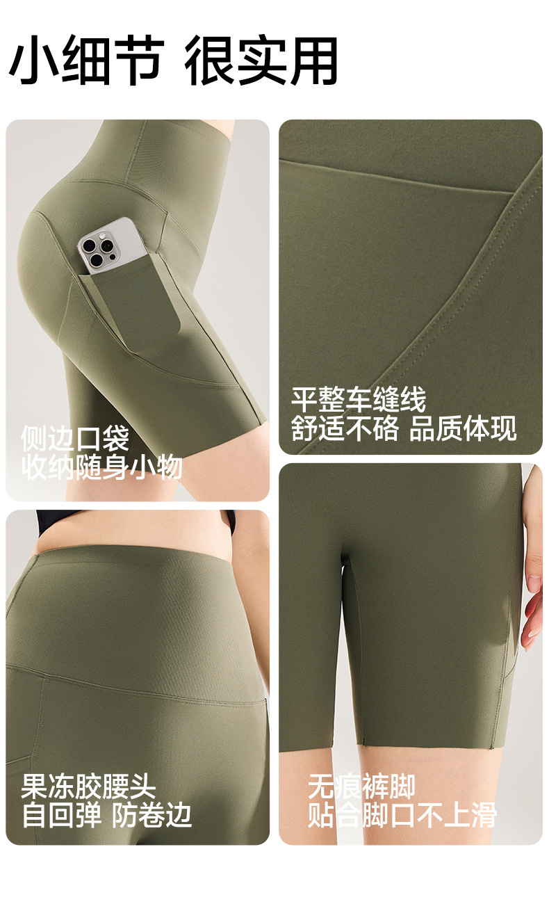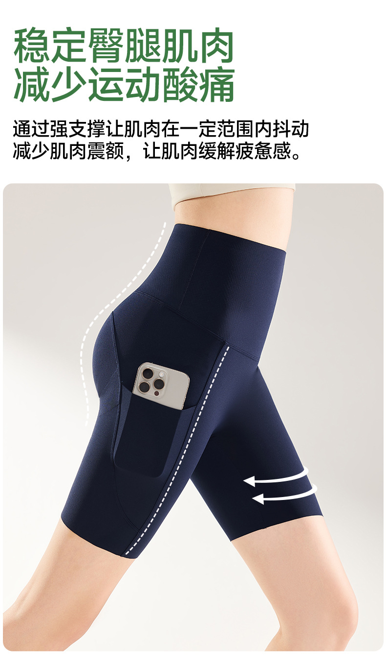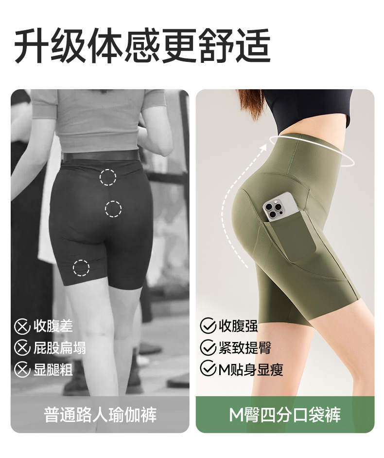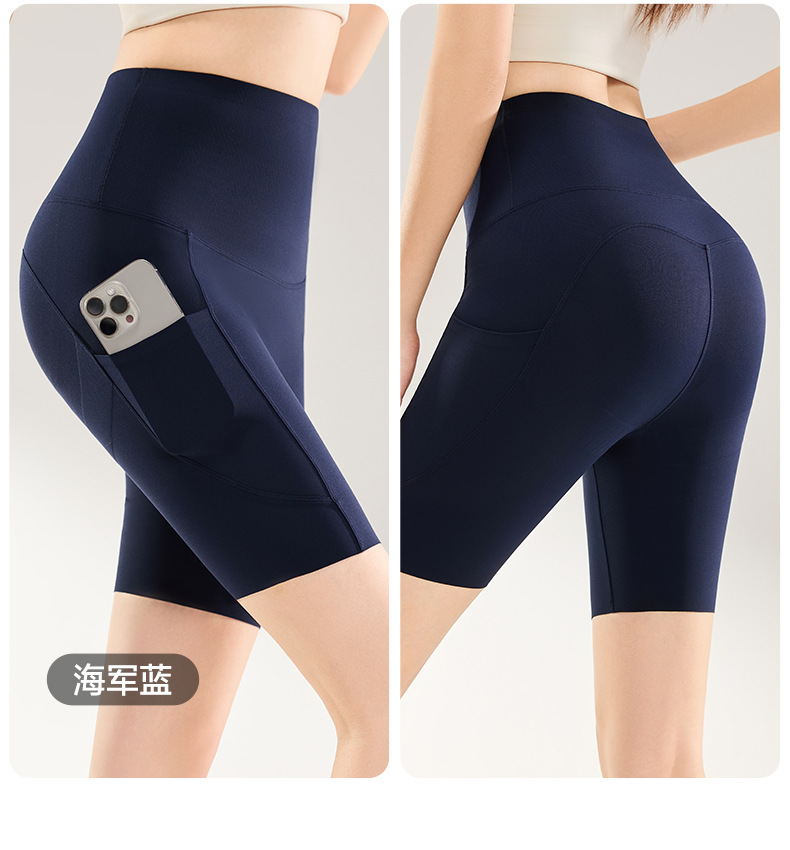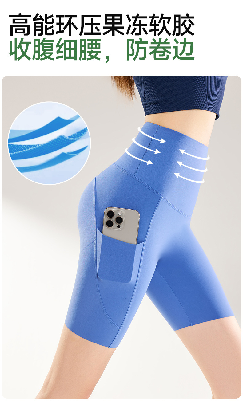 여름용 여성용 쿼터 요가 팬츠 얇은 포켓 하이 웨이스트 배 조절 엉덩이 리프팅 바닥 샤크 피트니스 사이클링 반바지