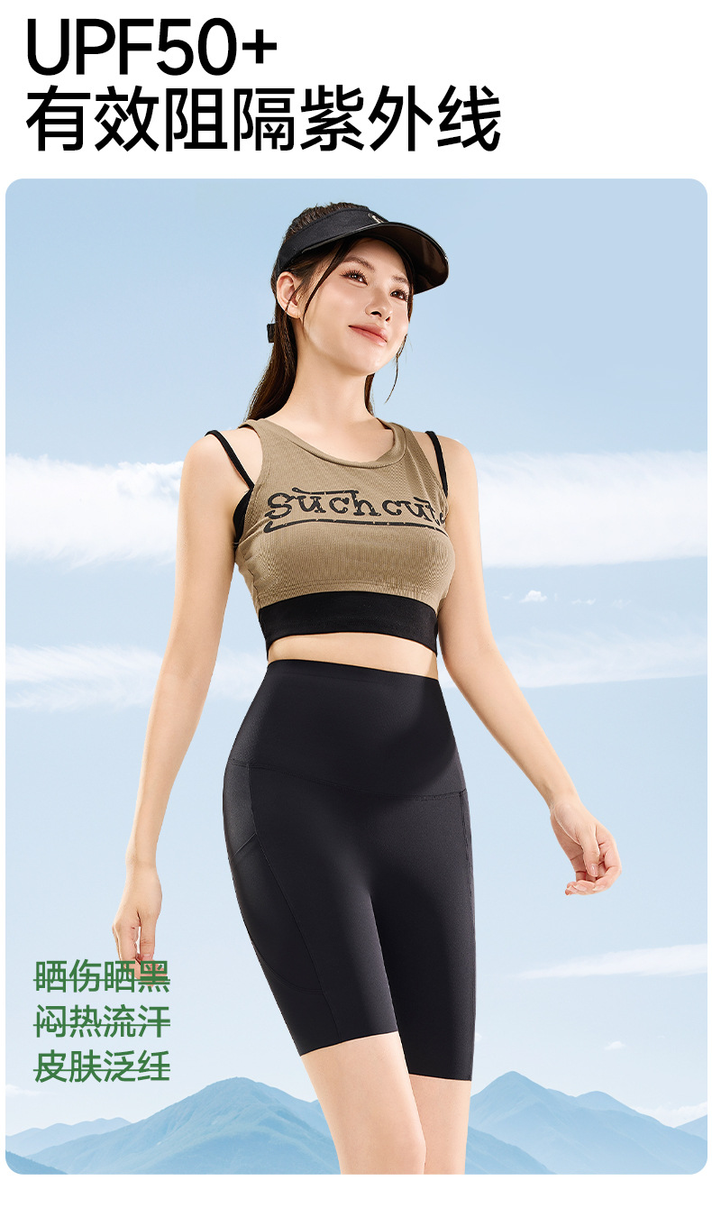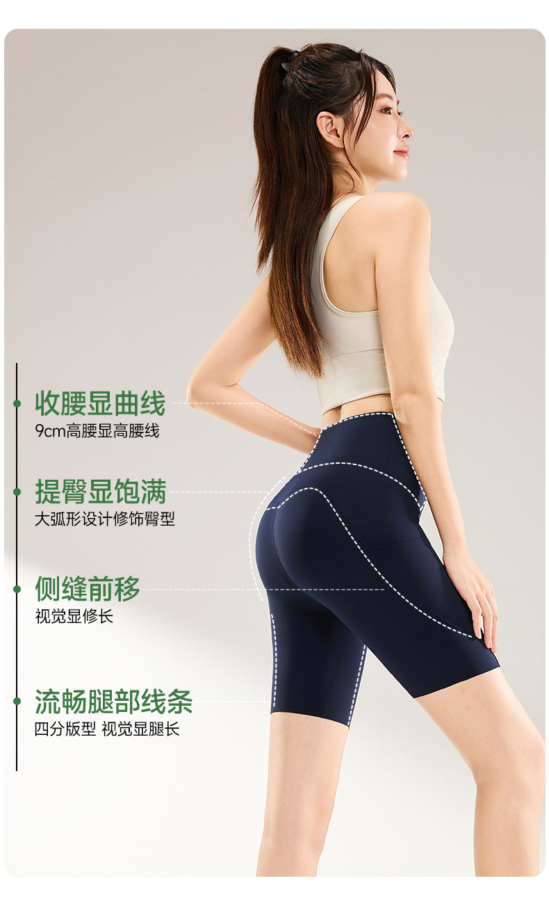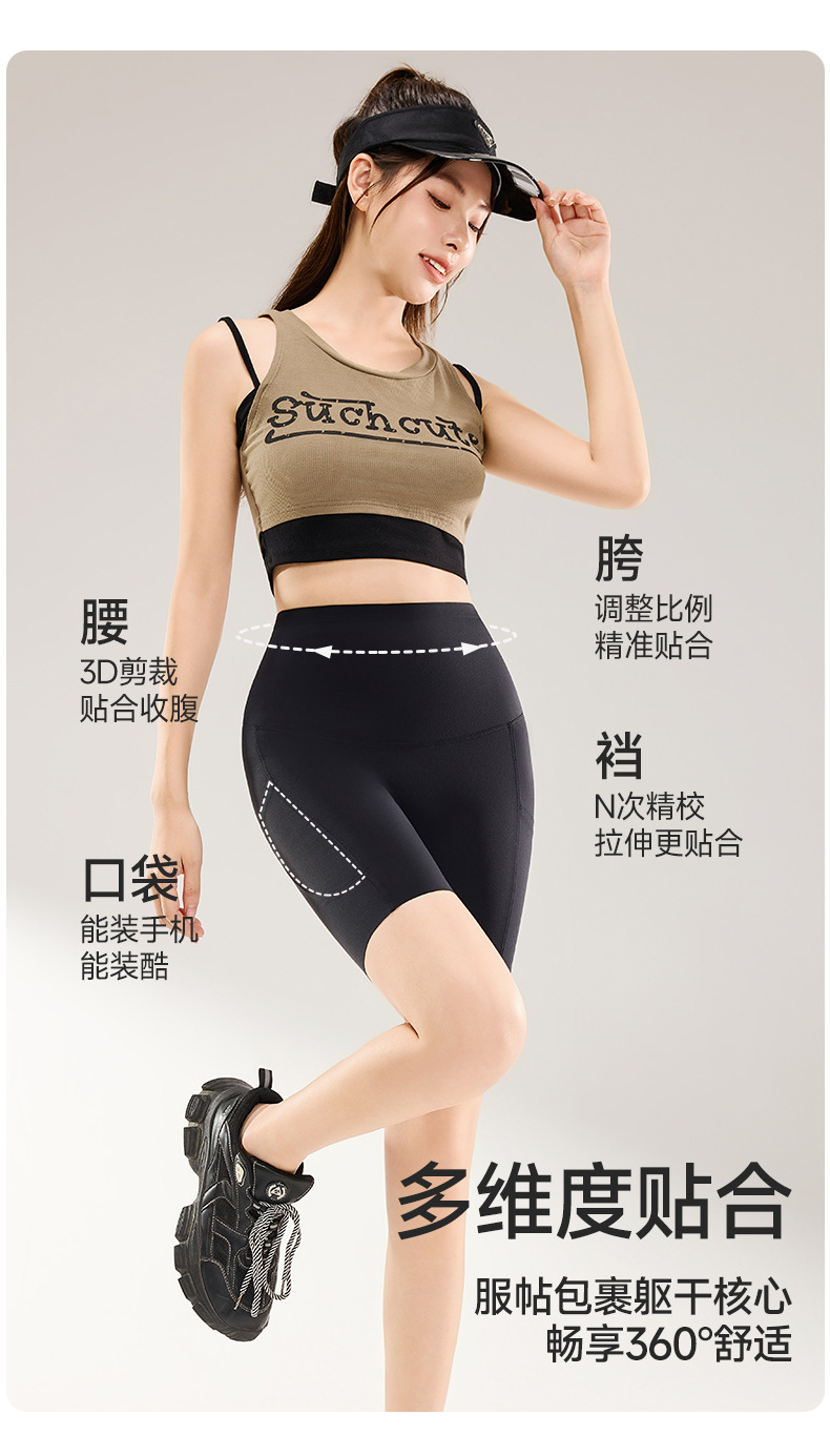 여름용 여성용 쿼터 요가 팬츠 얇은 포켓 하이 웨이스트 배 조절 엉덩이 리프팅 바닥 샤크 피트니스 사이클링 반바지