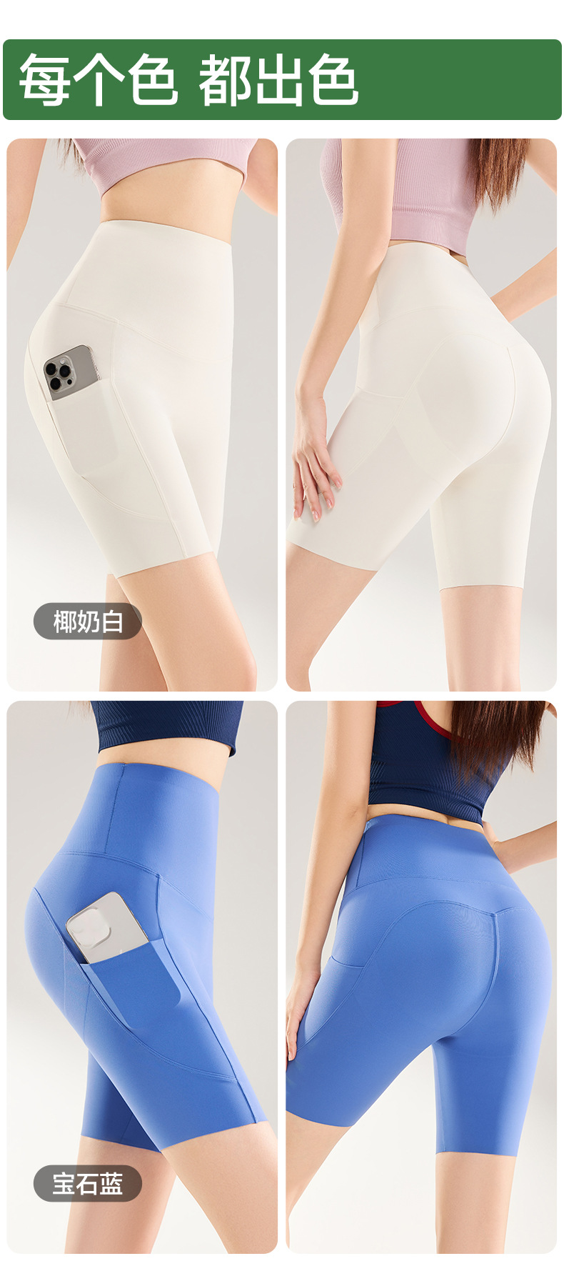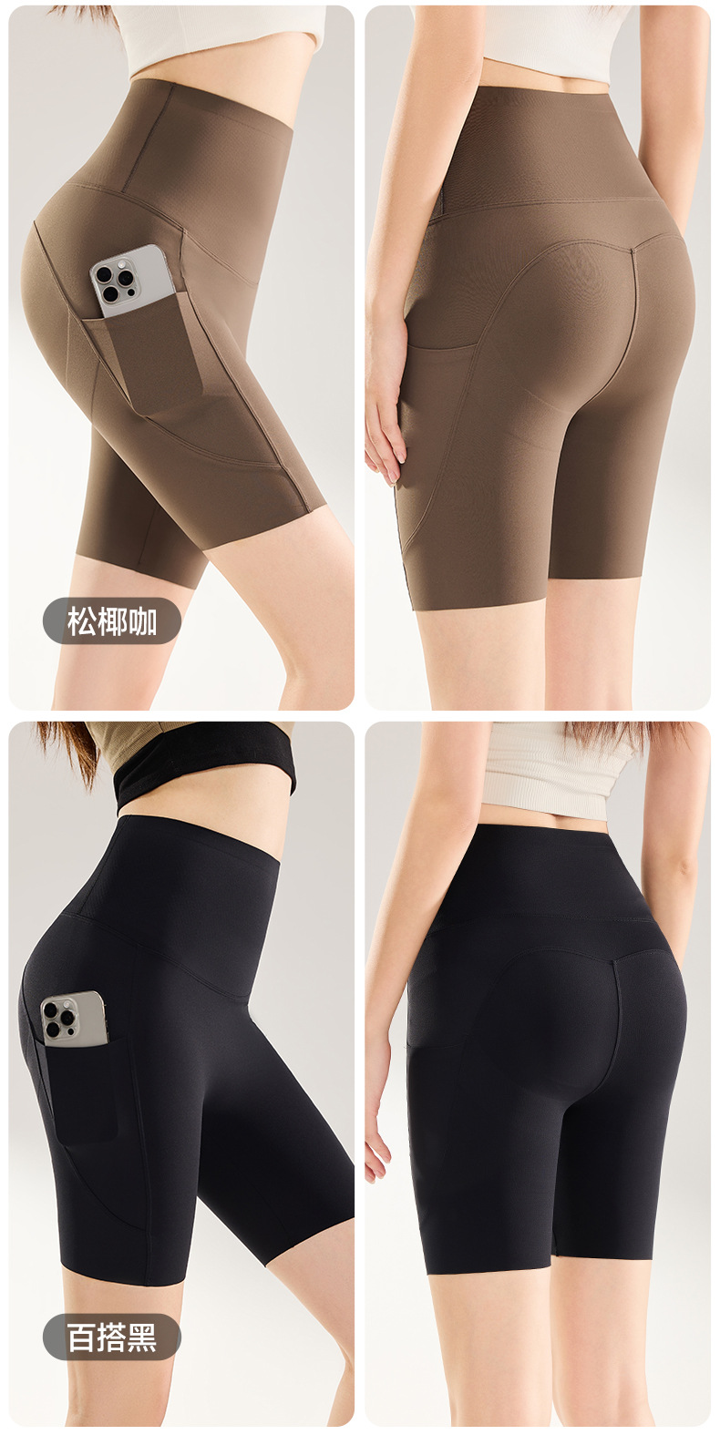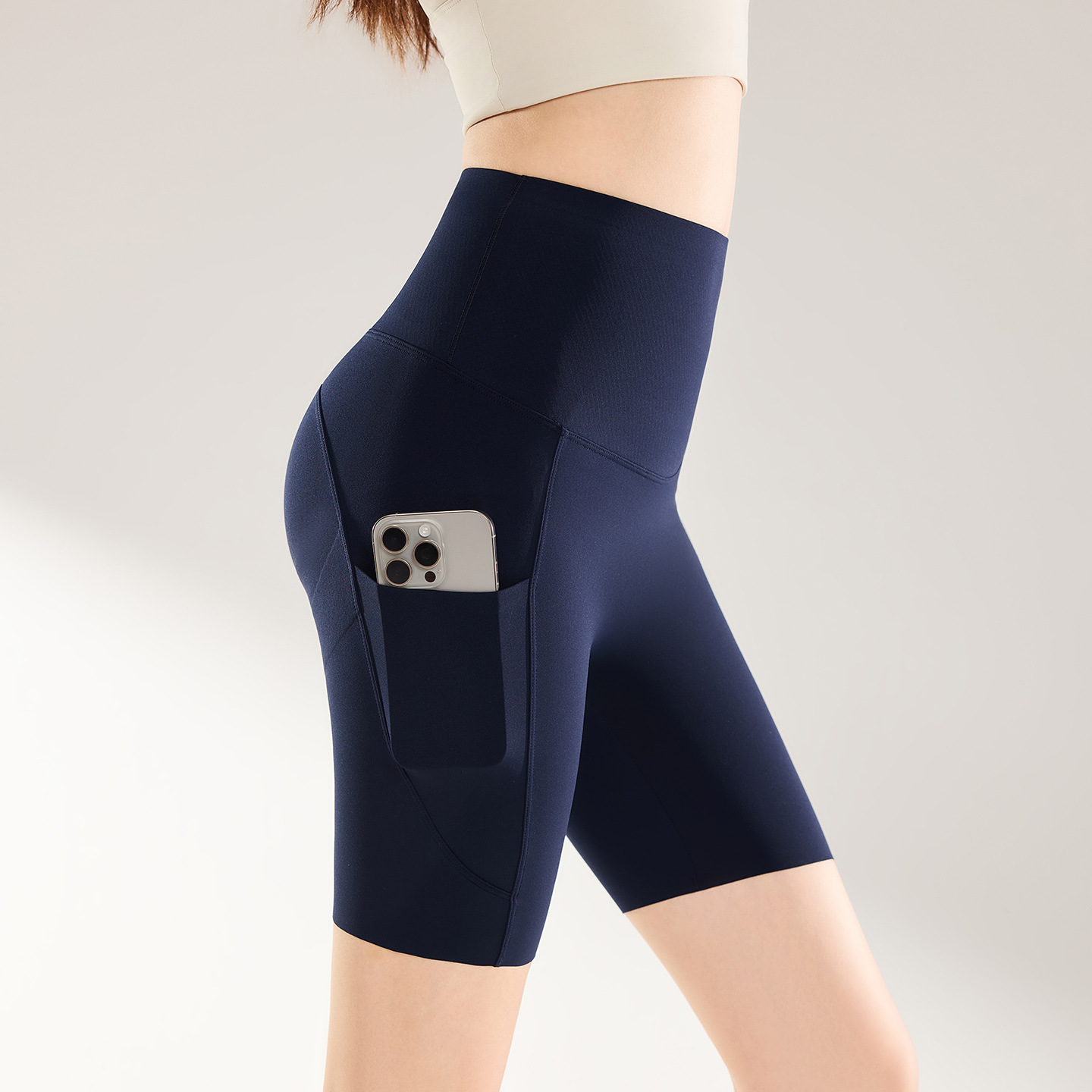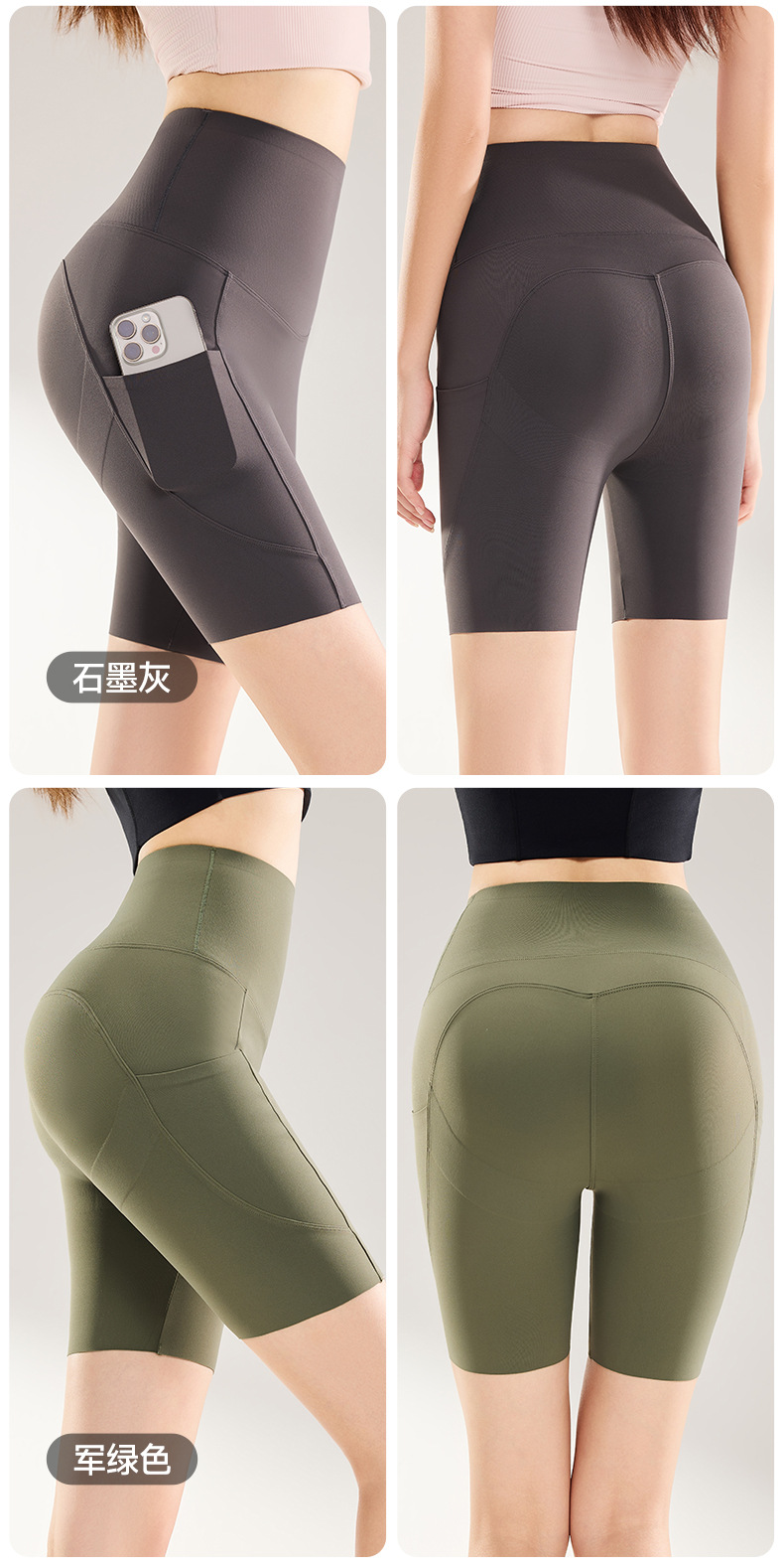 여름용 여성용 쿼터 요가 팬츠 얇은 포켓 하이 웨이스트 배 조절 엉덩이 리프팅 바닥 샤크 피트니스 사이클링 반바지