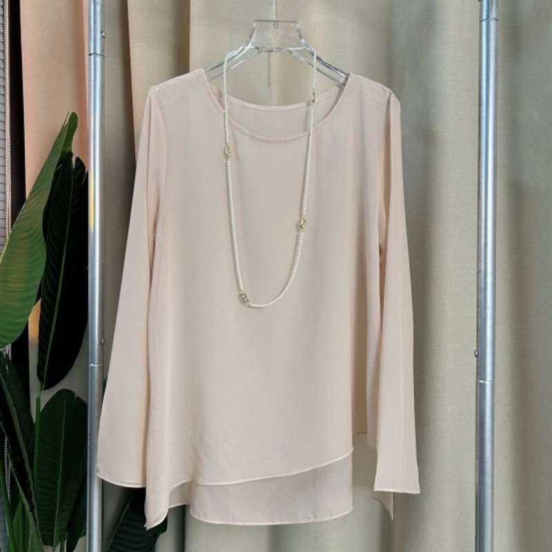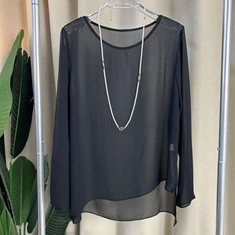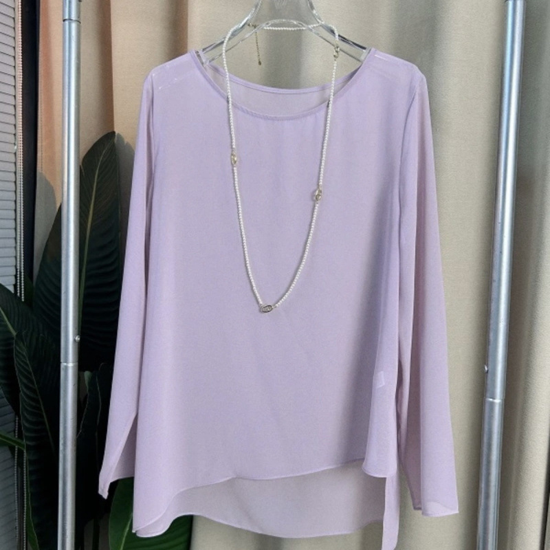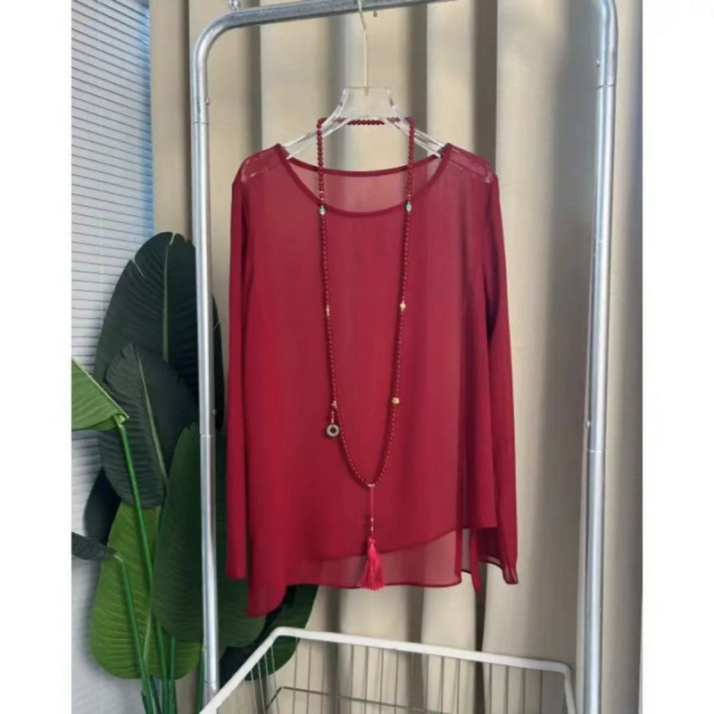 에어컨 썬블라우트 쉬폰 여름 가볍고 살짝 비치는 라운드넥 셔츠 여성용 긴팔 셔츠 루즈한 불규칙 아우터 여성용