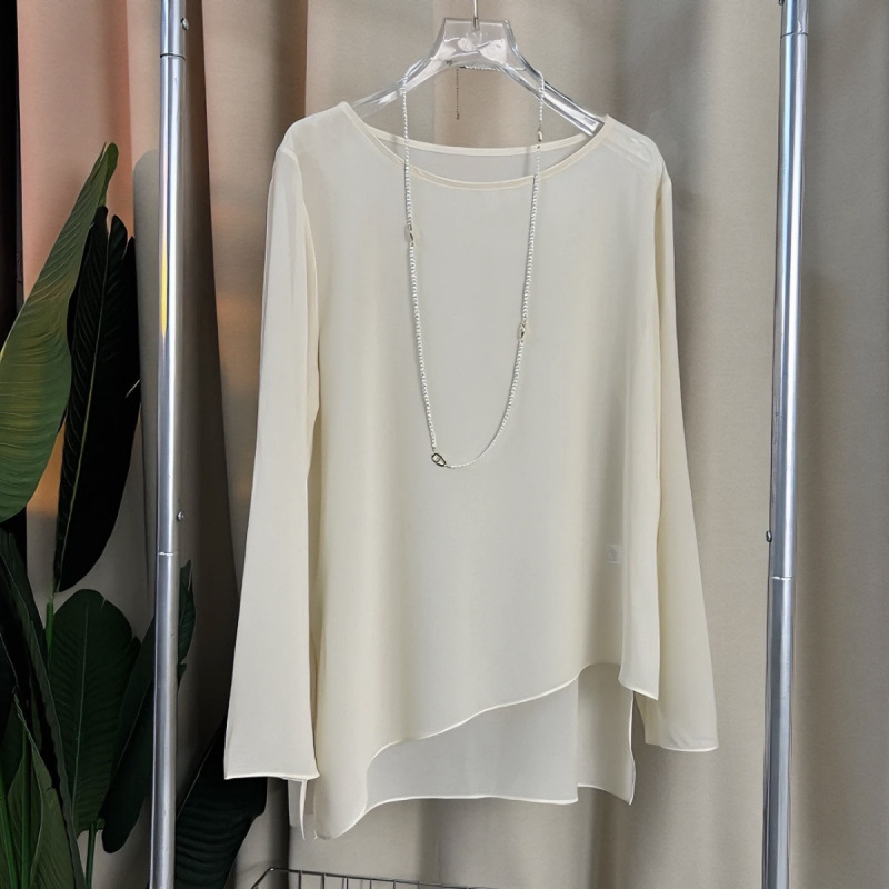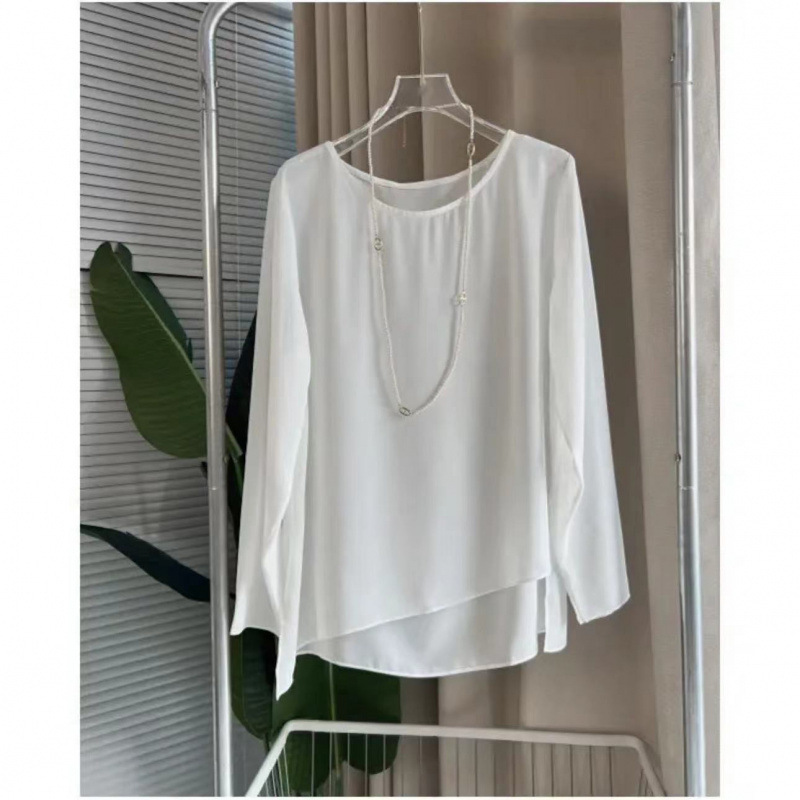 에어컨 썬블라우트 쉬폰 여름 가볍고 살짝 비치는 라운드넥 셔츠 여성용 긴팔 셔츠 루즈한 불규칙 아우터 여성용스토어 가기