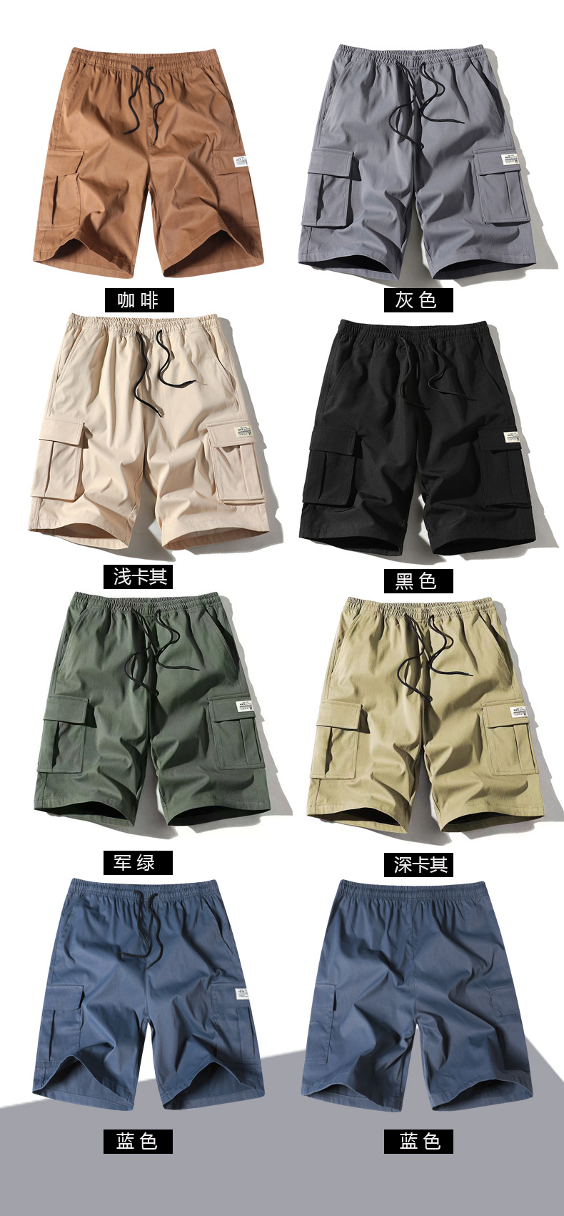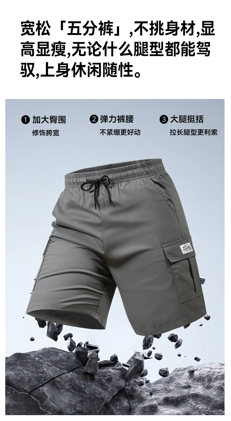 대외 무역 대형 크로스 보더 반바지 남성 여름 솔리드 컬러 5부 바지 새로운 멀티 포켓 루즈 대형 비치 바지 작업복스토어 가기