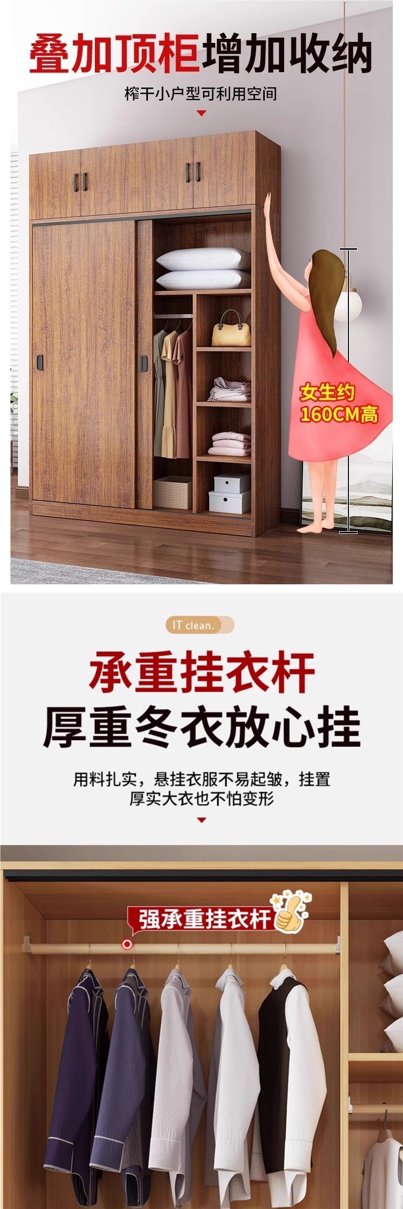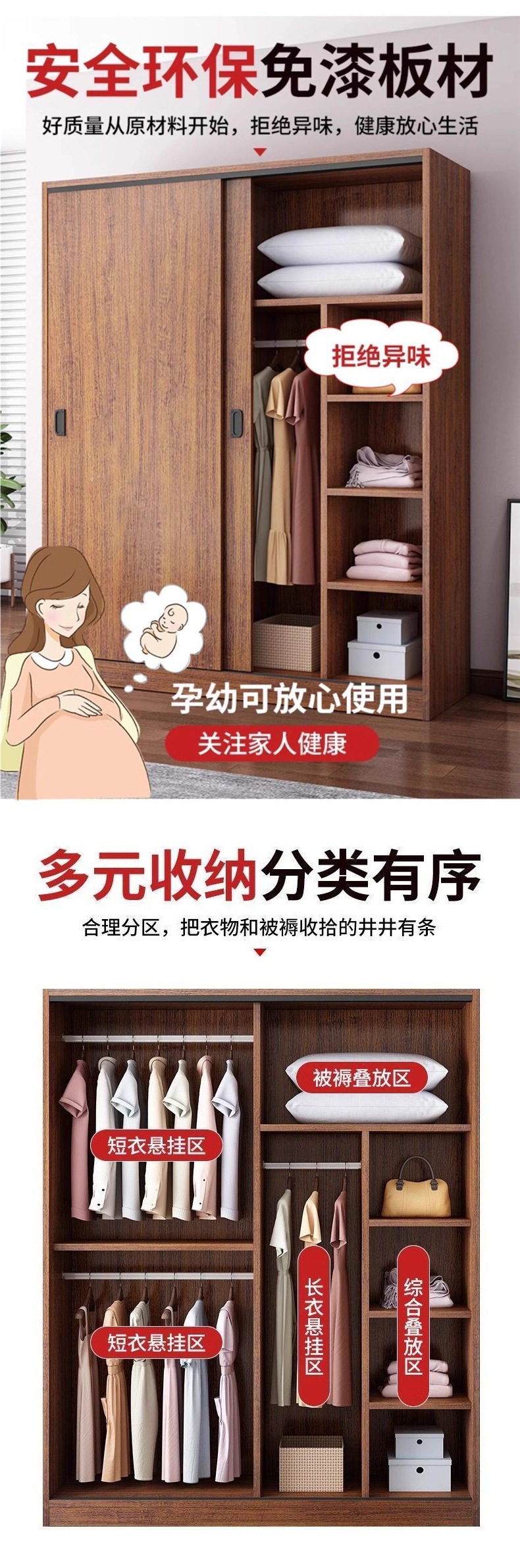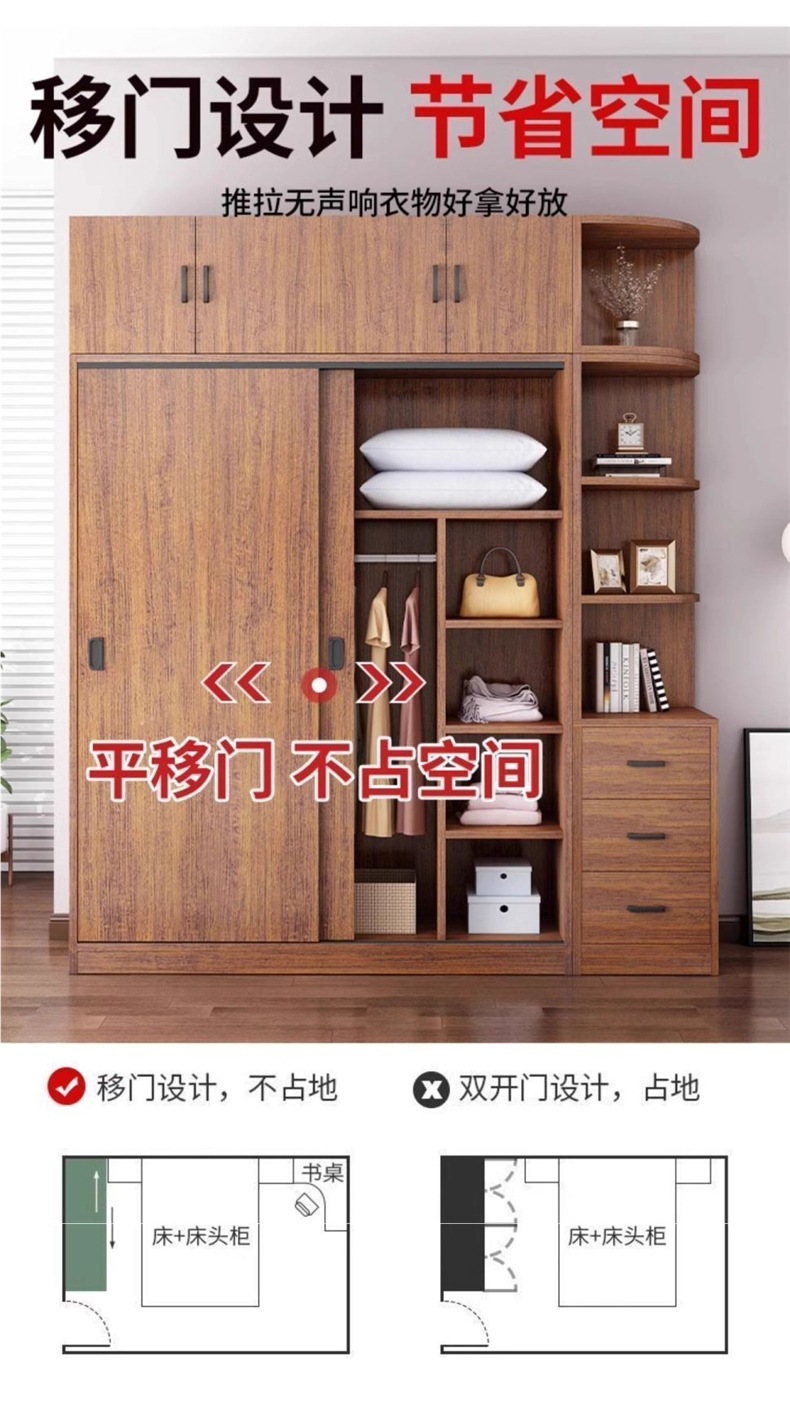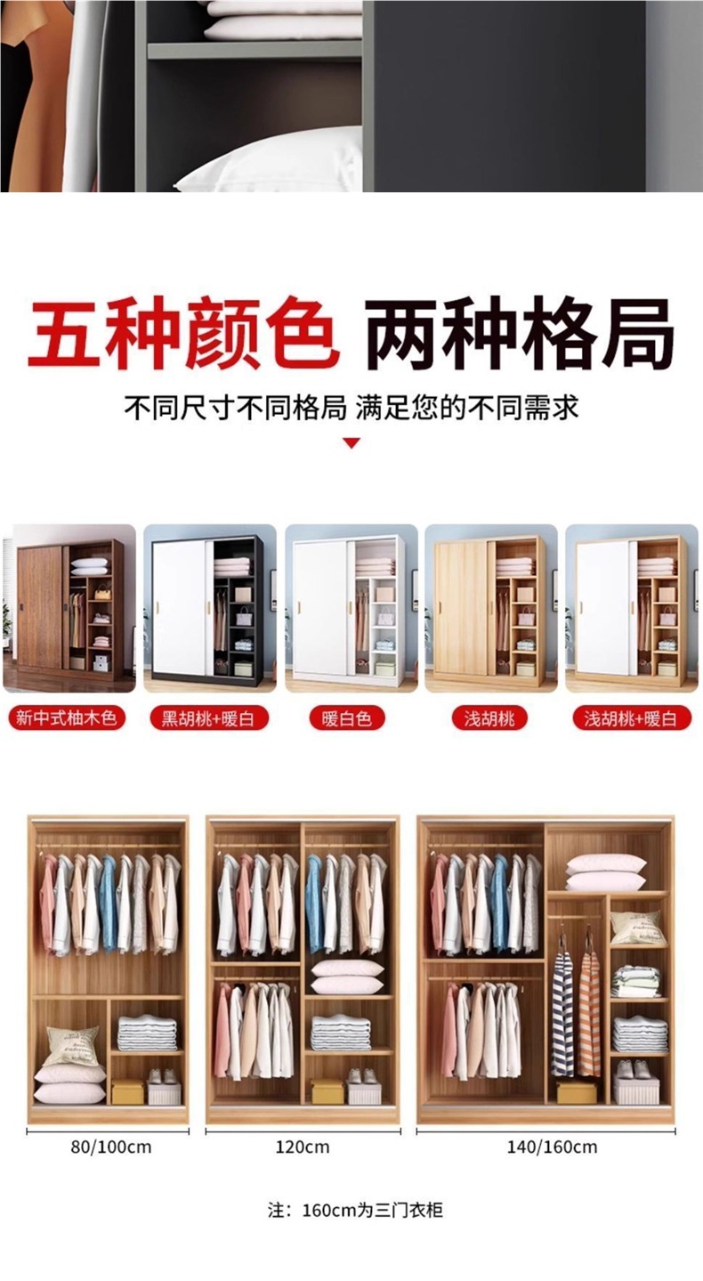 나무 옷장 홈 침실 슬라이딩 도어 옷장 임대 주택 작은 아파트 간단한 저장 단단한 나무 두꺼운 캐비닛