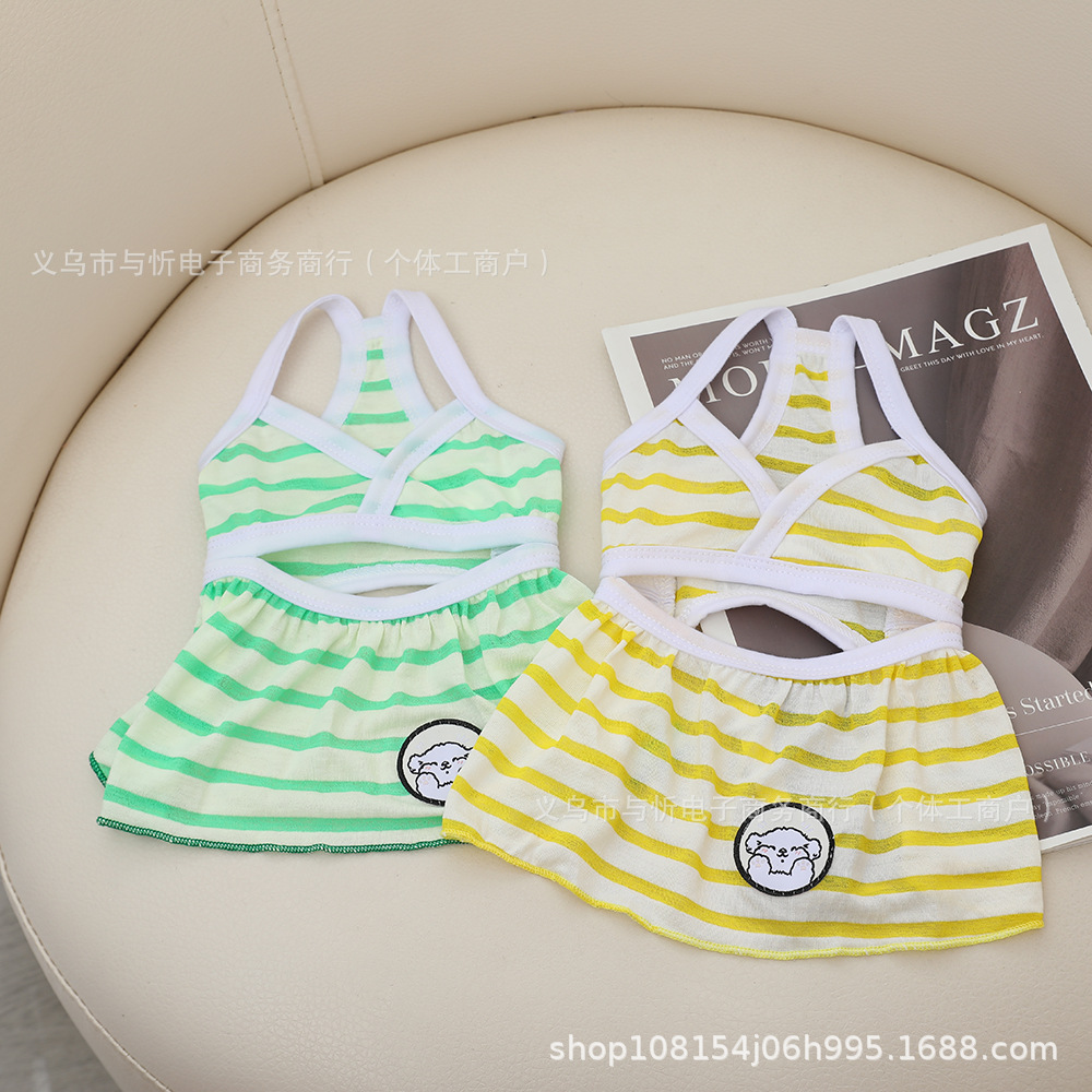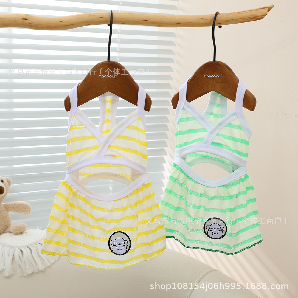 애완 동물 의류 고양이와 강아지 옷 여름 얇은 중공 스커트 비키니 서스펜더 스커트 스트라이프 드레스스토어 가기