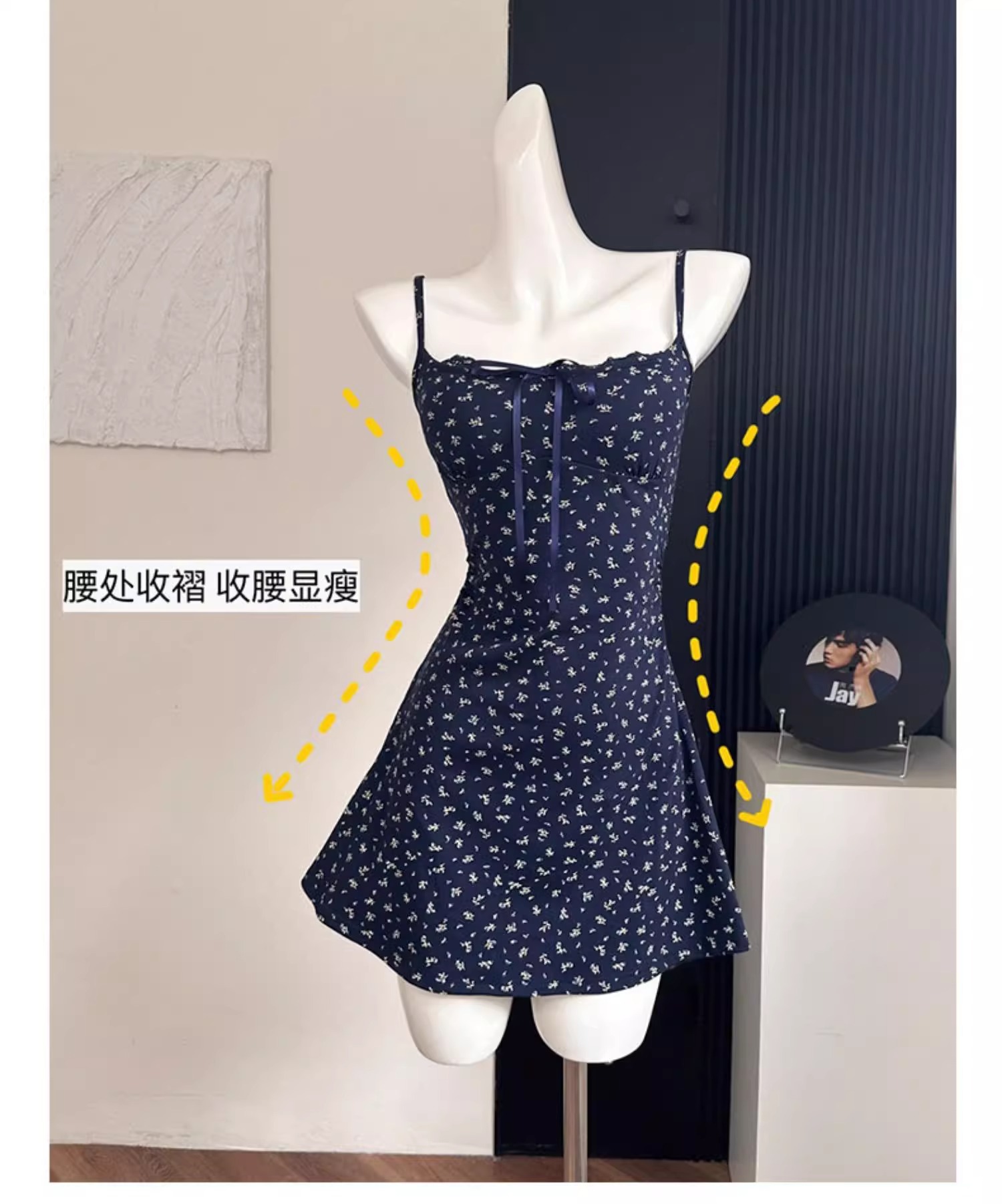 • 네이비 블루 꽃무늬 스커트 (숏스타일) [가슴 패드 지참]