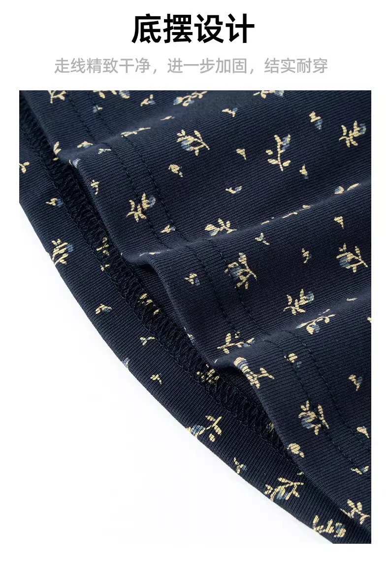 • 네이비 블루 플로럴 스커트 (롱 스타일) [가슴 패드 없음]