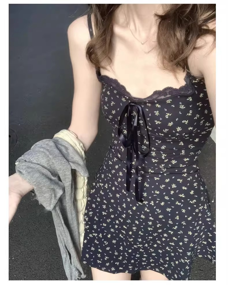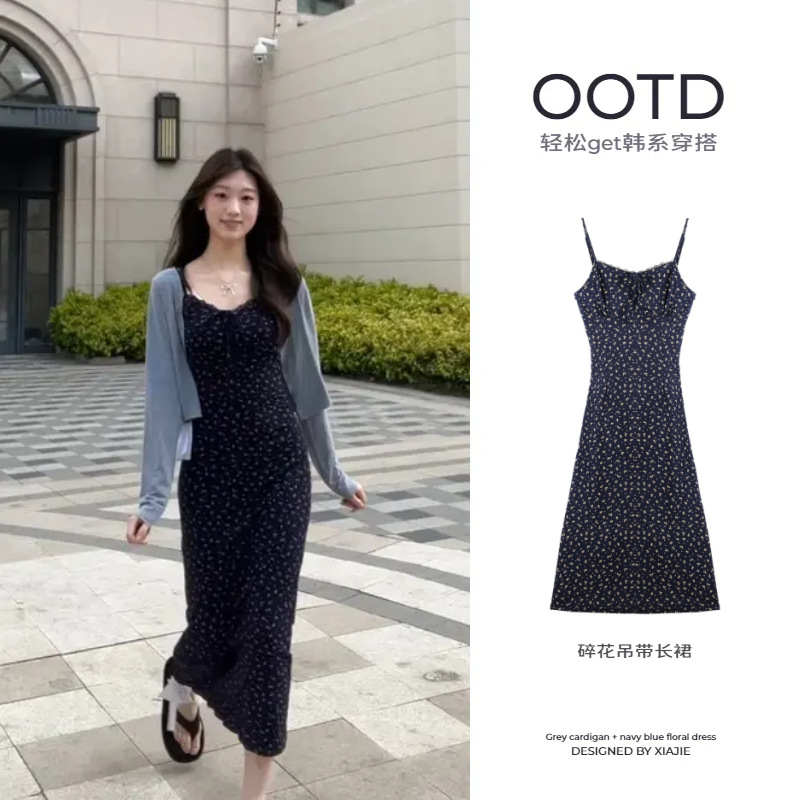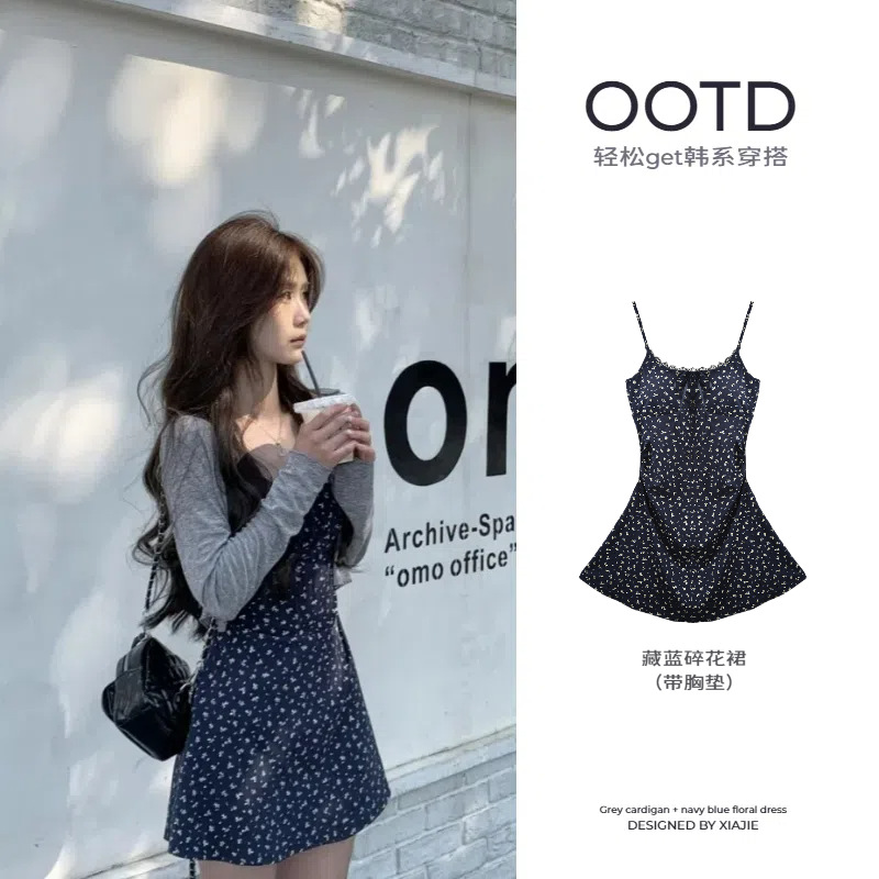 꽃무늬 스트랩 드레스와 가슴 패드가 있는 스커트, 2026년 신상 여름 스타일, 가디건과 함께 입으면 더욱 아름다운 한국 스타일, 작은 체형에도 어울리는 룩스토어 가기