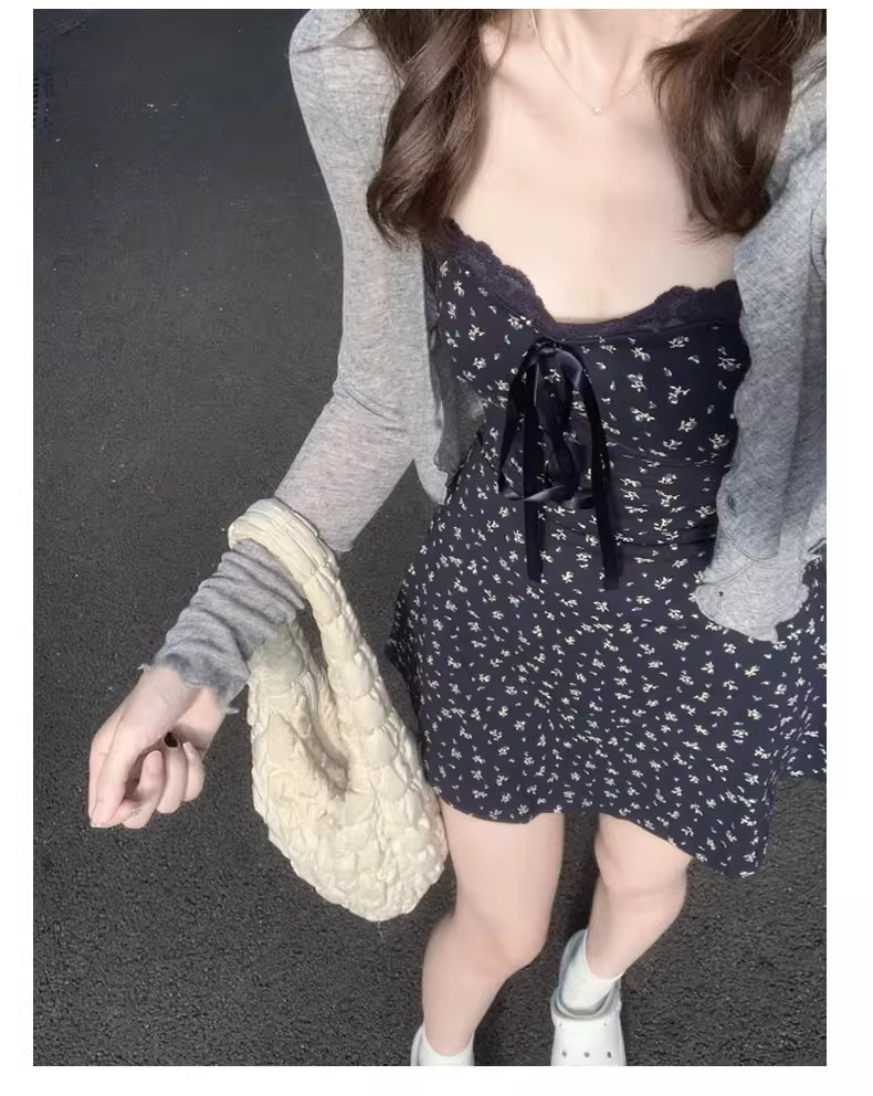 꽃무늬 스트랩 드레스와 가슴 패드가 있는 스커트, 2026년 신상 여름 스타일, 가디건과 함께 입으면 더욱 아름다운 한국 스타일, 작은 체형에도 어울리는 룩