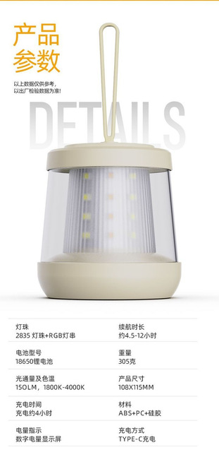 국경 간 새로운 야외 조명 캠핑 램프 긴 배터리 수명 충전 캠프 분위기 복고풍 캠핑 텐트 야간 조명