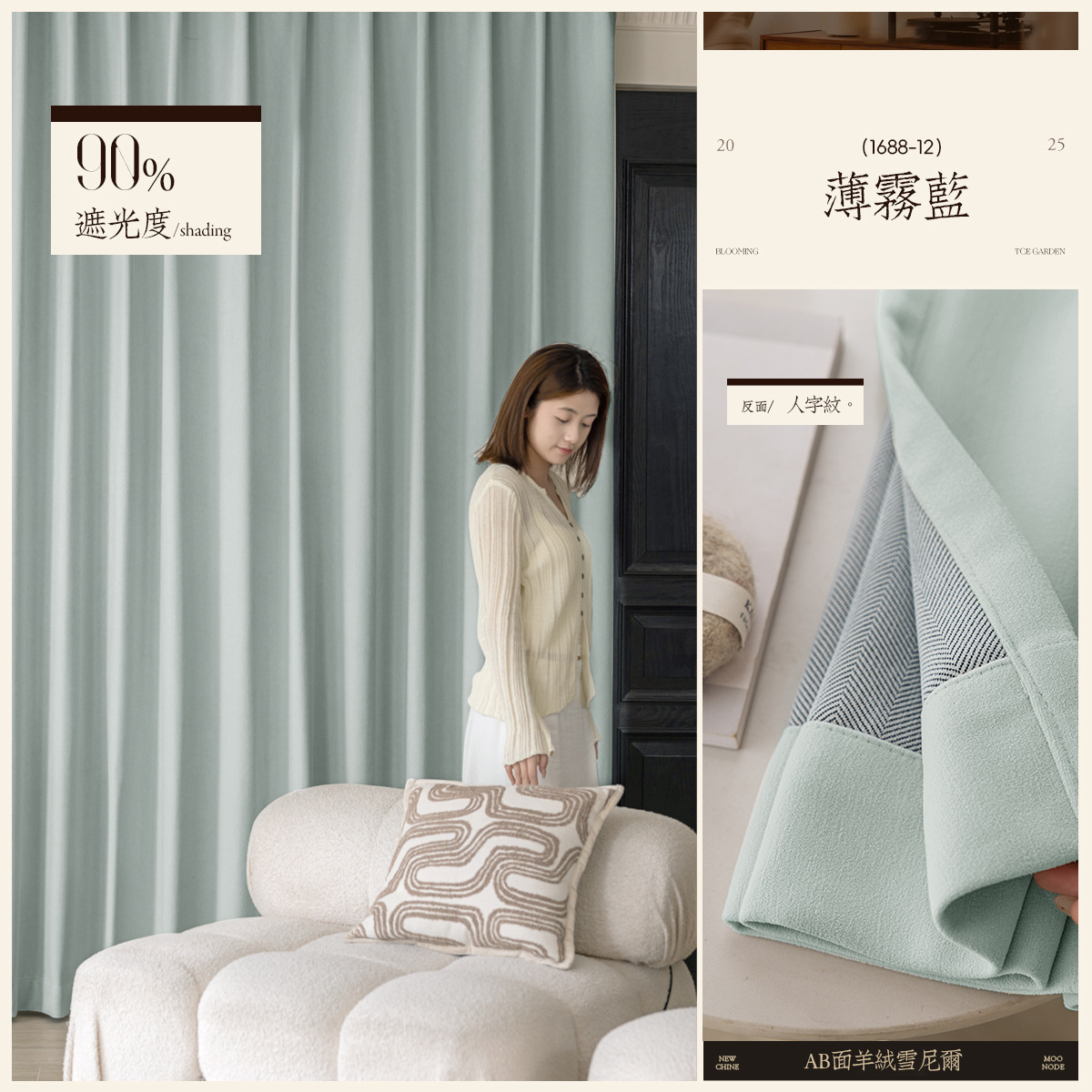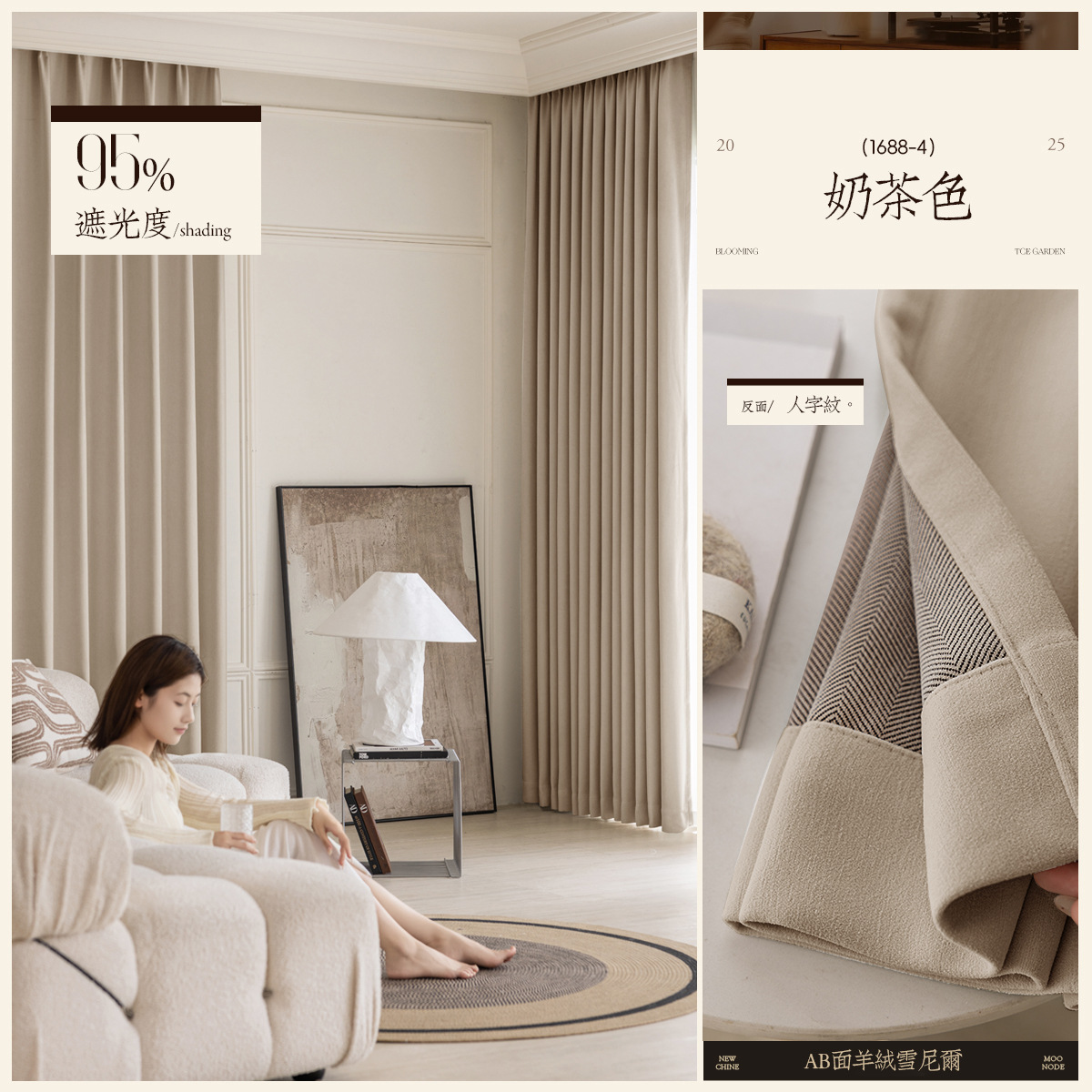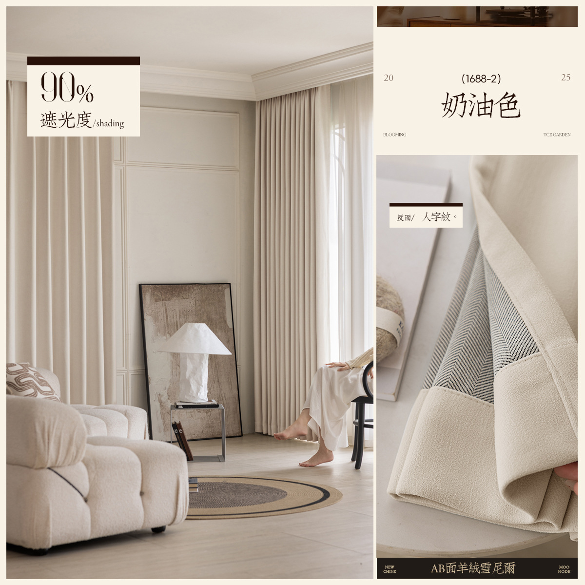 AB 양면 셔닐 커튼 새로운 두꺼운 침실 완전 차광 크림 스타일 거실 고급 샹저우 커튼스토어 가기