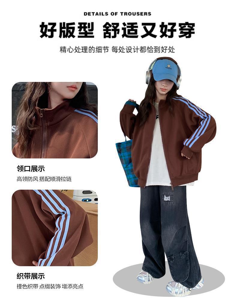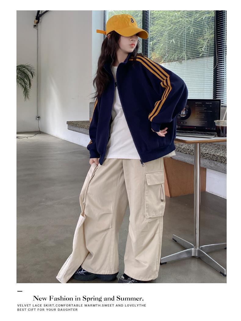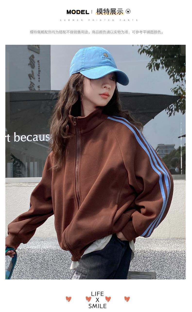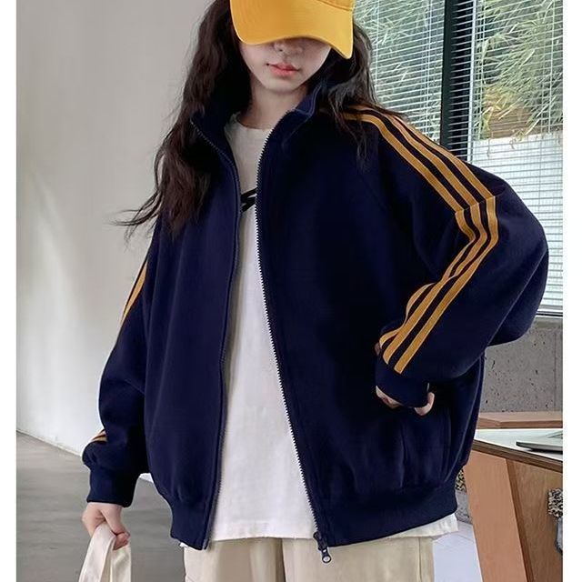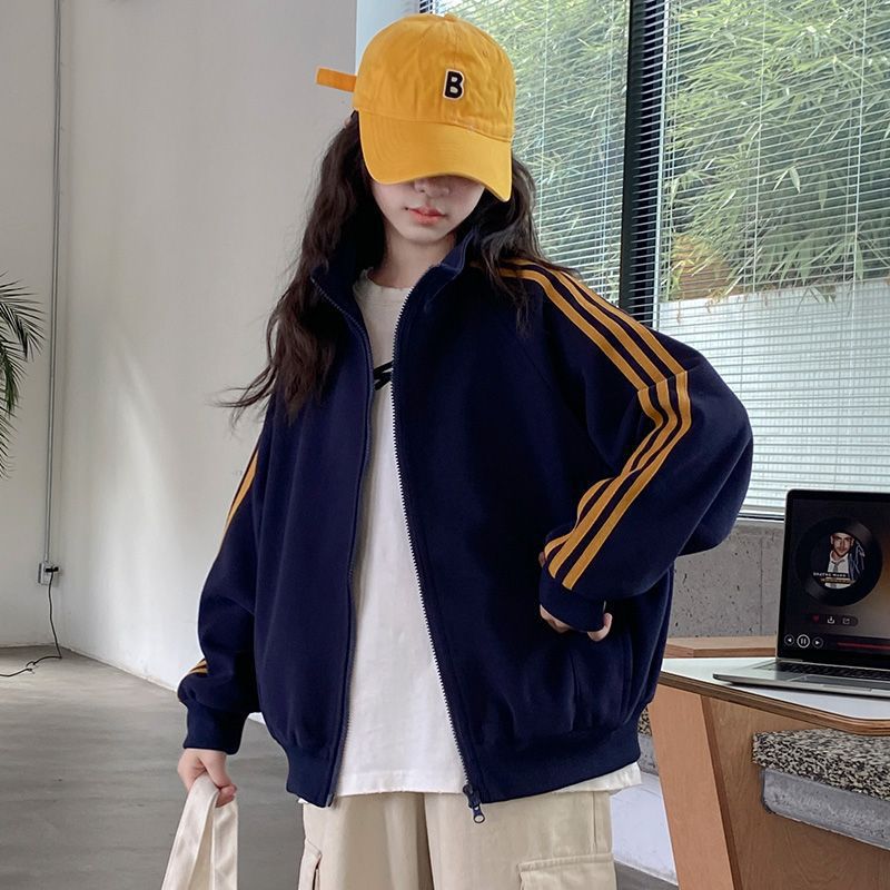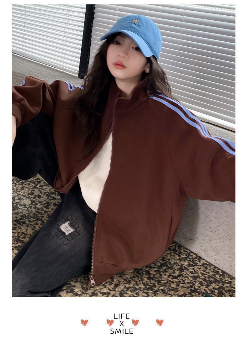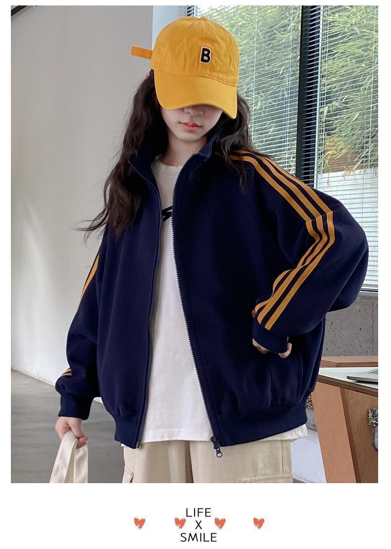 여아 한국 패션 다재다능한 캐주얼 재킷, 봄, 가을 새로운 스타일의 스탠드업 칼라 스트라이프 가디건 탑 트렌디스토어 가기