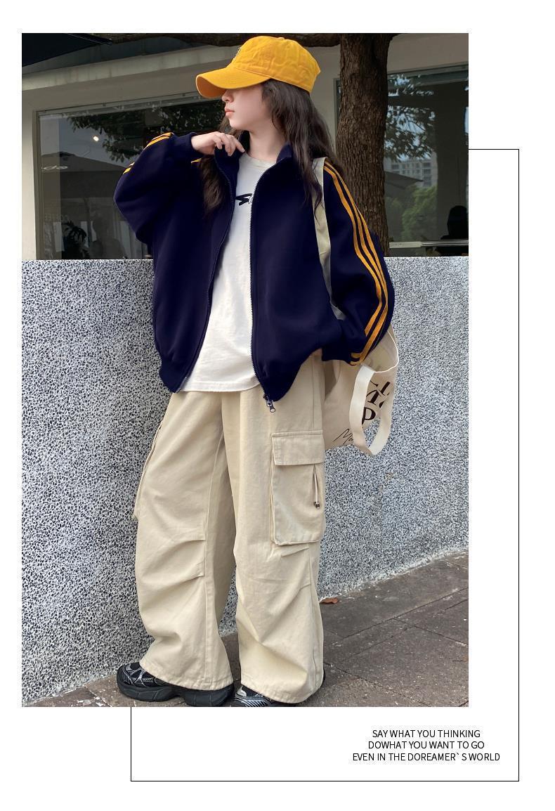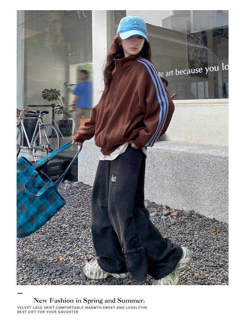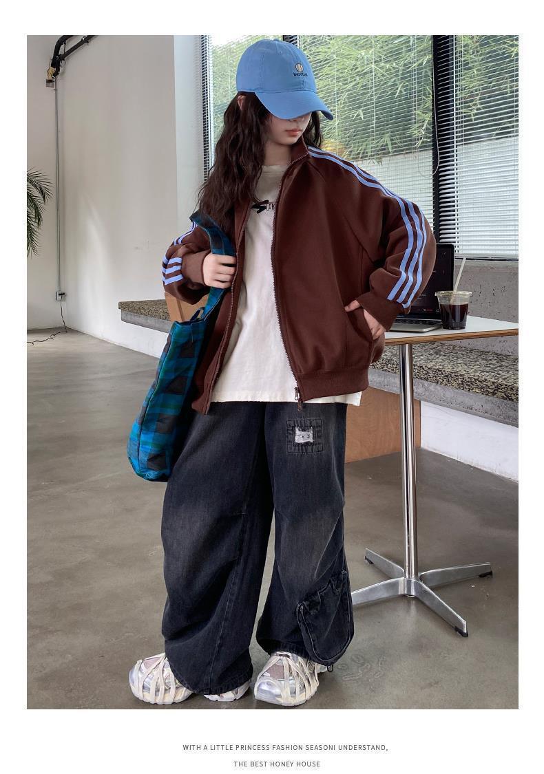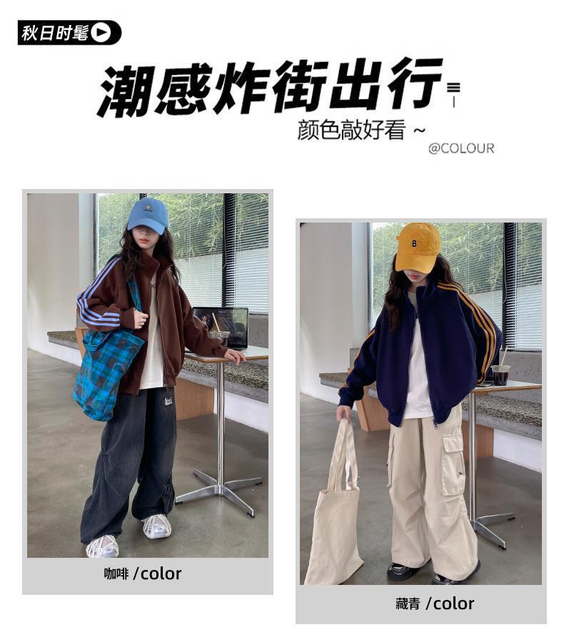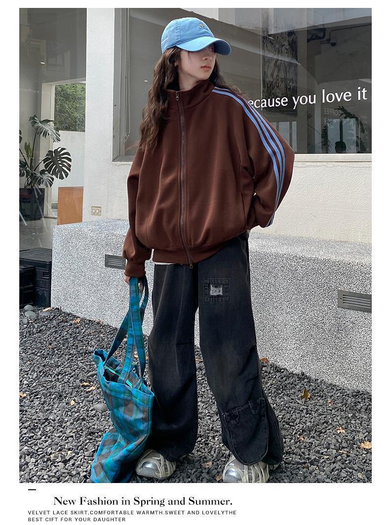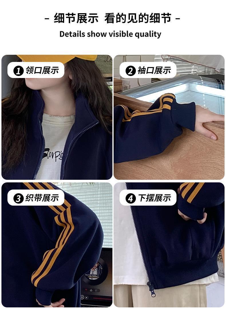 여아 한국 패션 다재다능한 캐주얼 재킷, 봄, 가을 새로운 스타일의 스탠드업 칼라 스트라이프 가디건 탑 트렌디스토어 가기