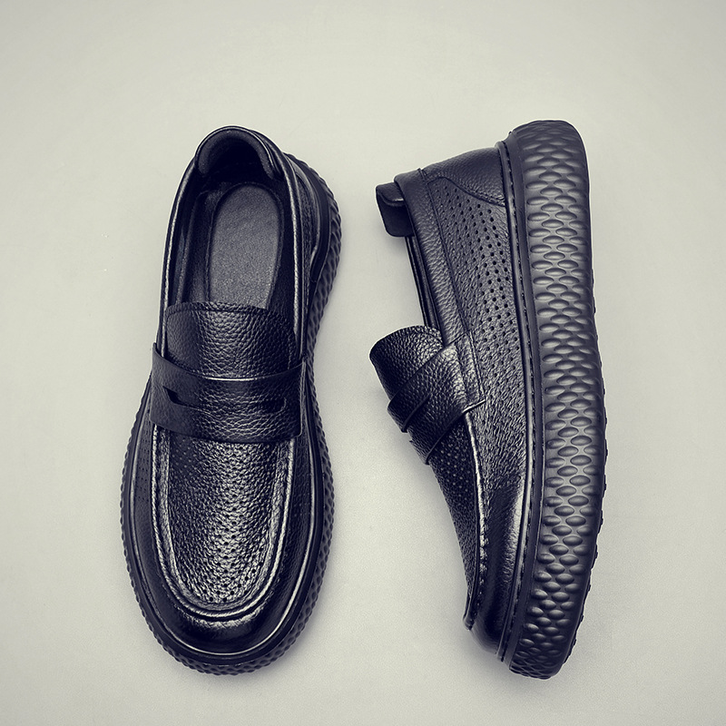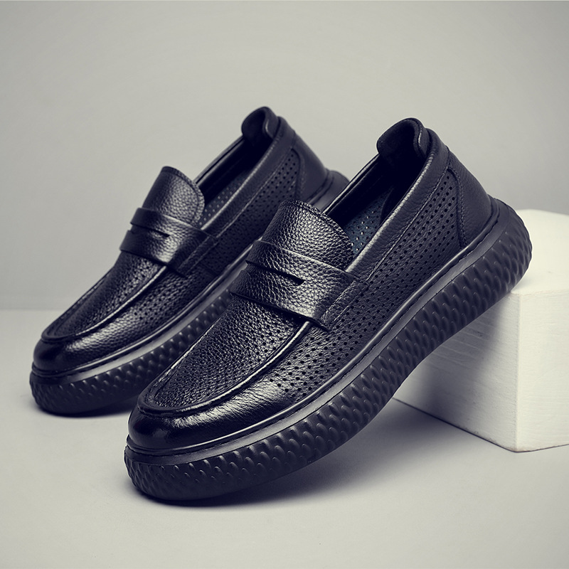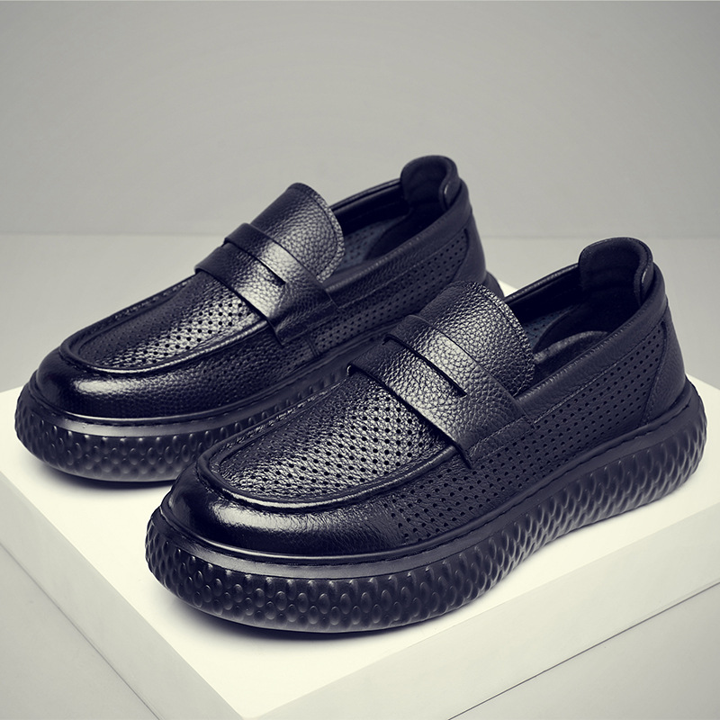 남성 신발 여름 2025 새로운 중공 가죽 통기성 슬립 온 아빠 가죽 신발 남성 나막신 캐주얼 샌들스토어 가기