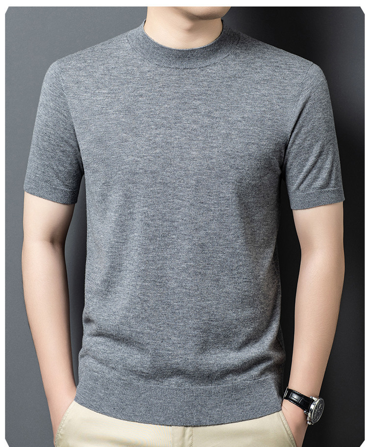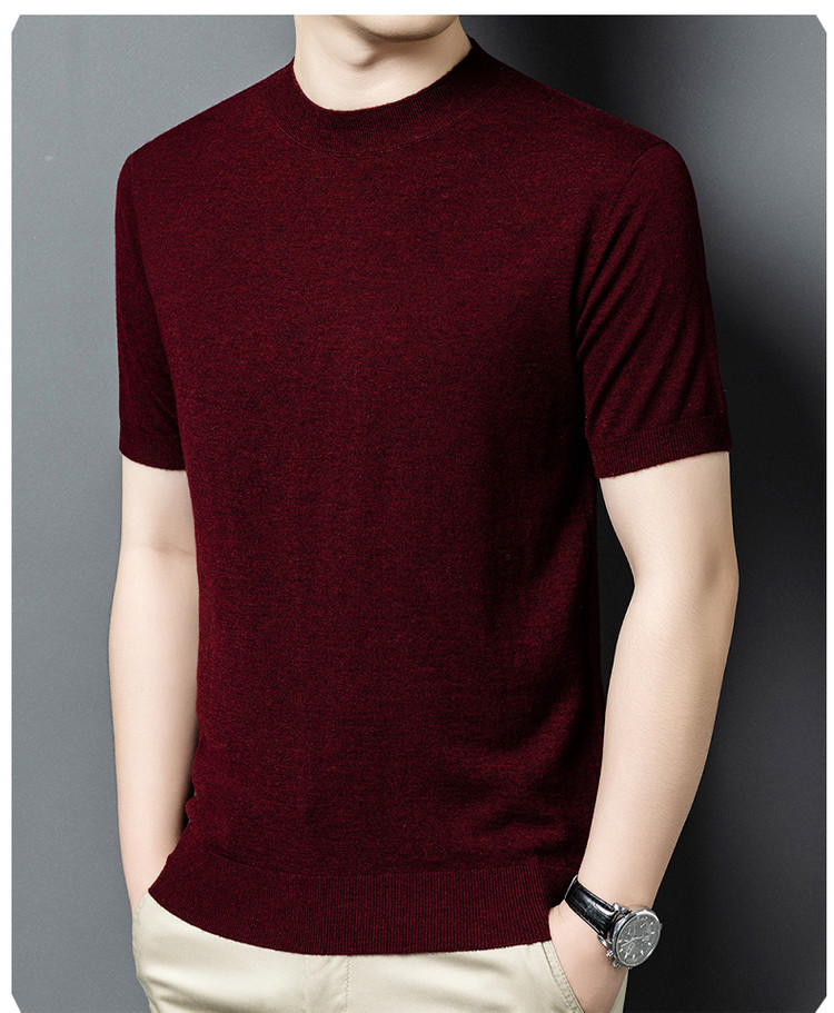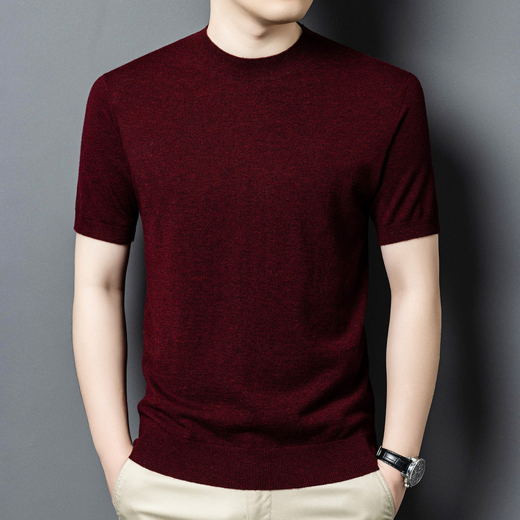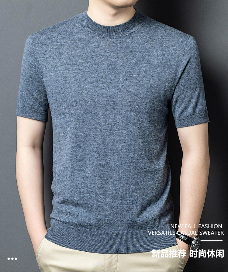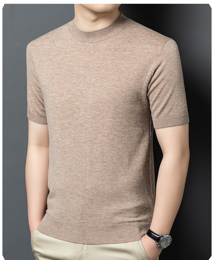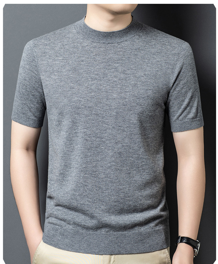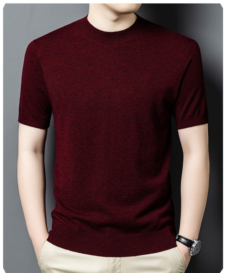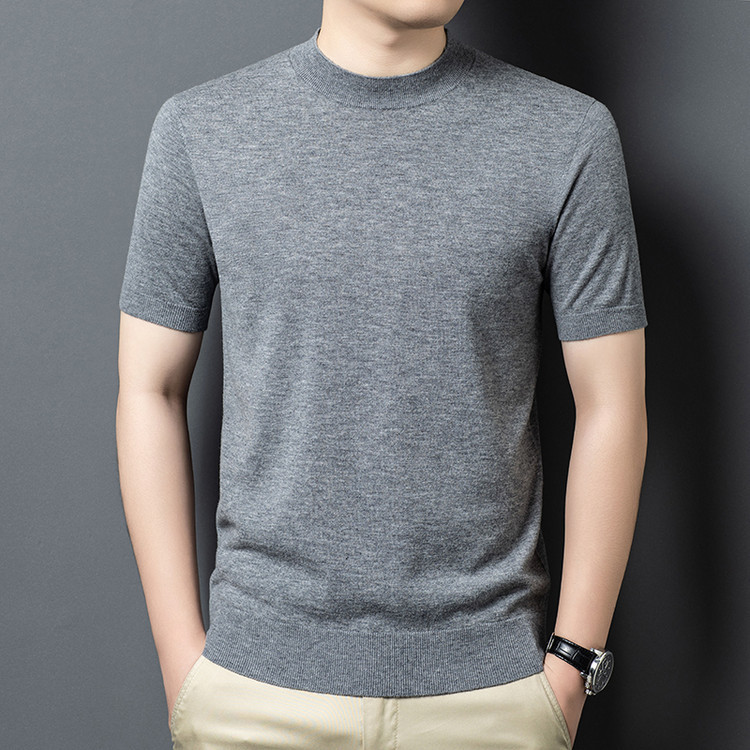 울 스웨터 남성용 100% 양털 니트 베이스 레이어 남성용 반팔 니트 울 스웨터 티셔츠 비즈니스 다용도 단색