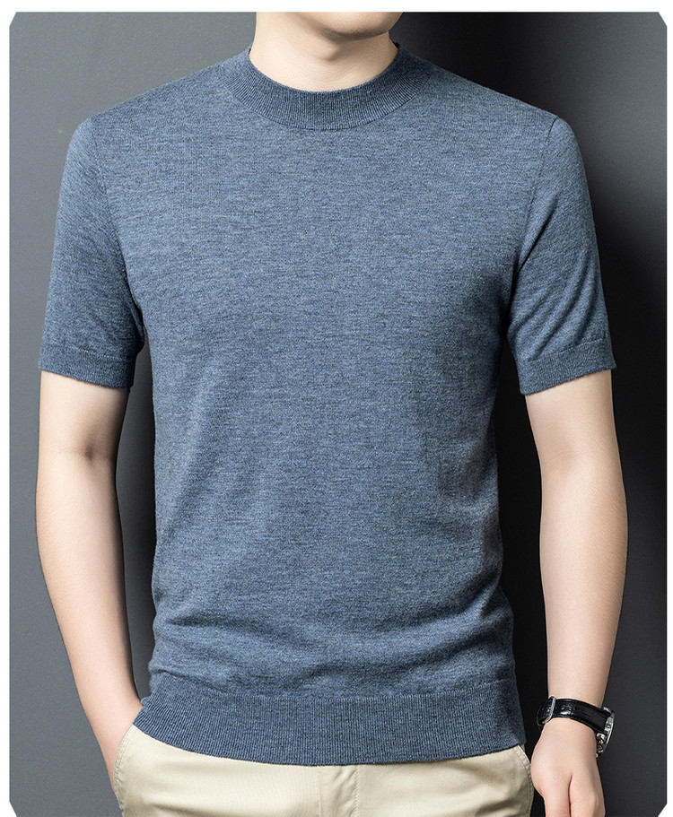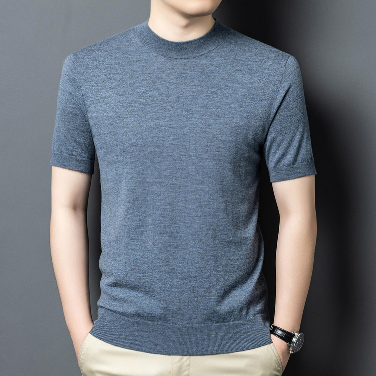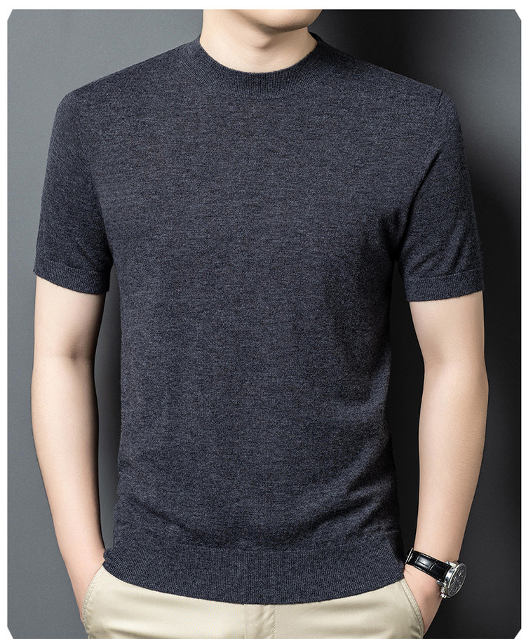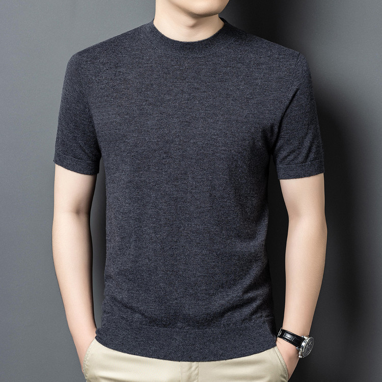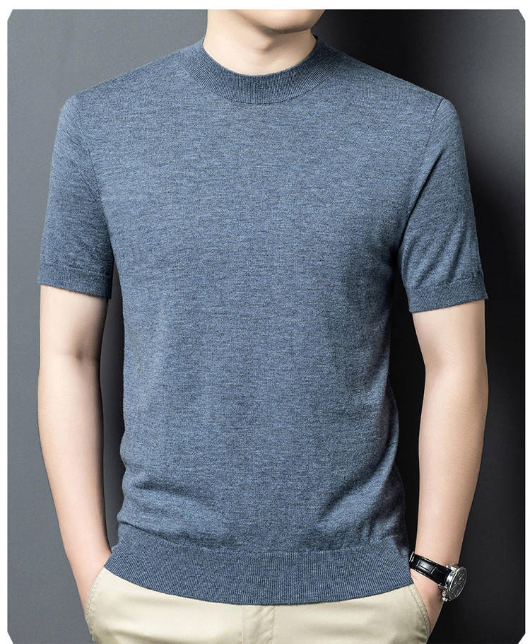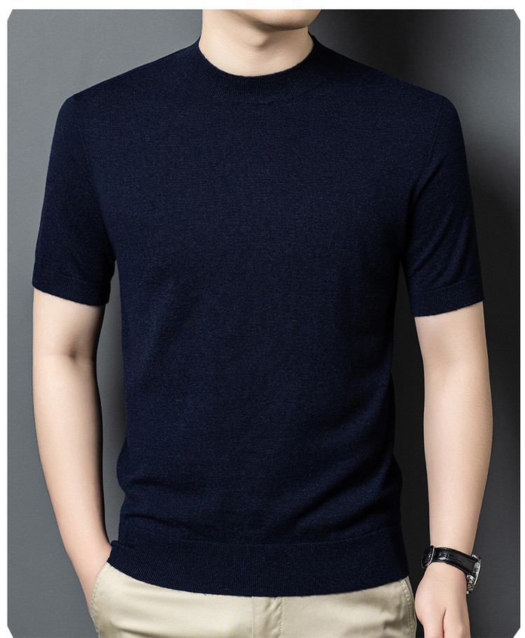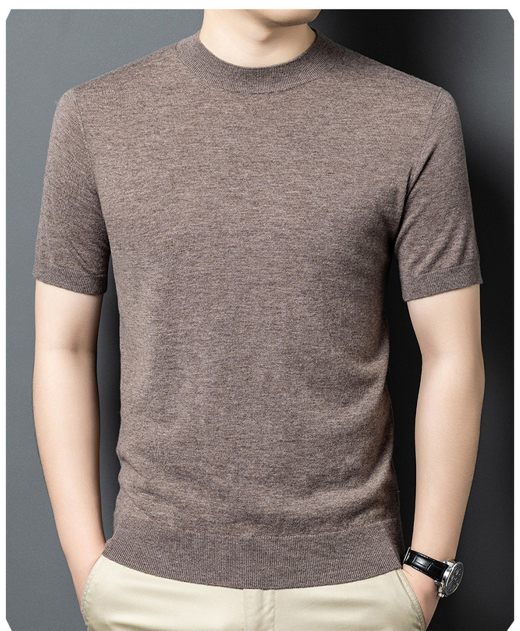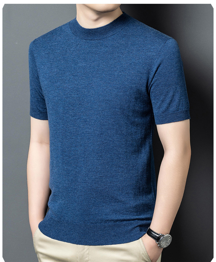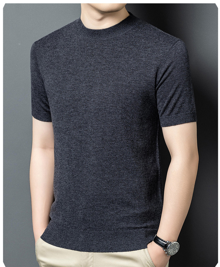 울 스웨터 남성용 100% 양털 니트 베이스 레이어 남성용 반팔 니트 울 스웨터 티셔츠 비즈니스 다용도 단색