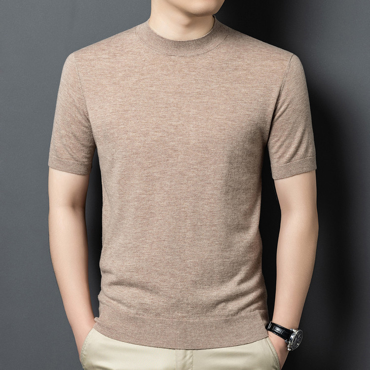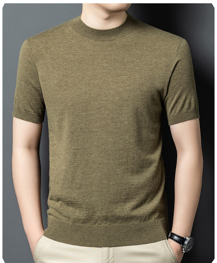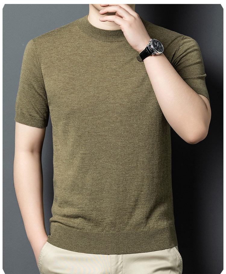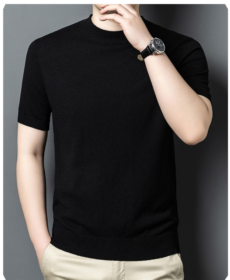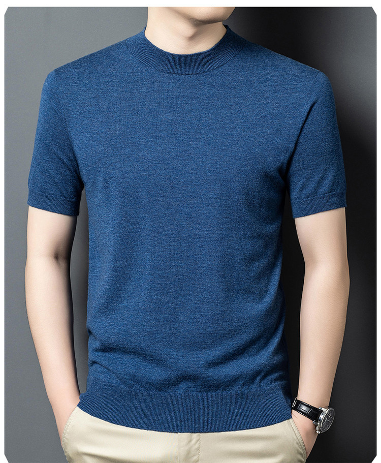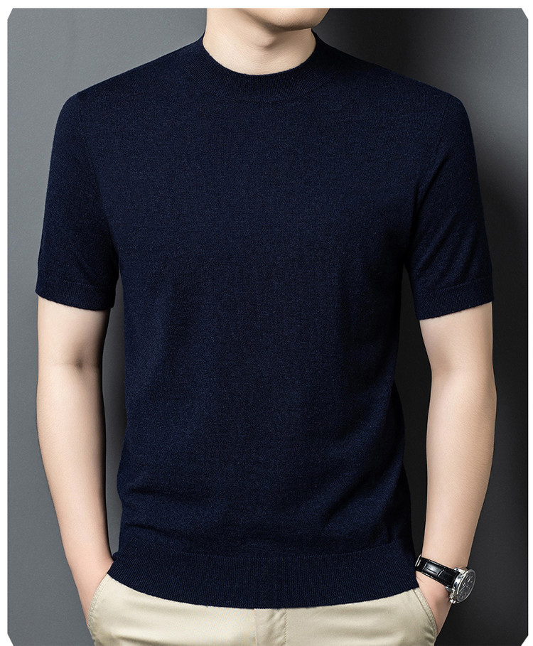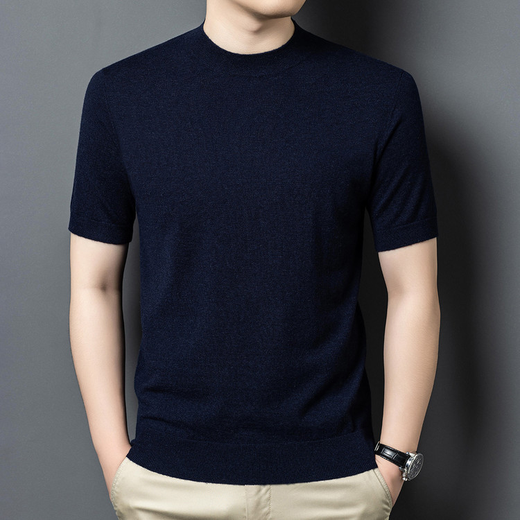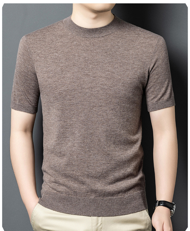 울 스웨터 남성용 100% 양털 니트 베이스 레이어 남성용 반팔 니트 울 스웨터 티셔츠 비즈니스 다용도 단색