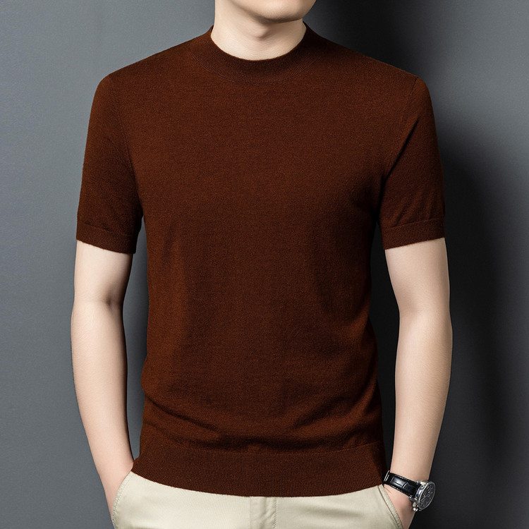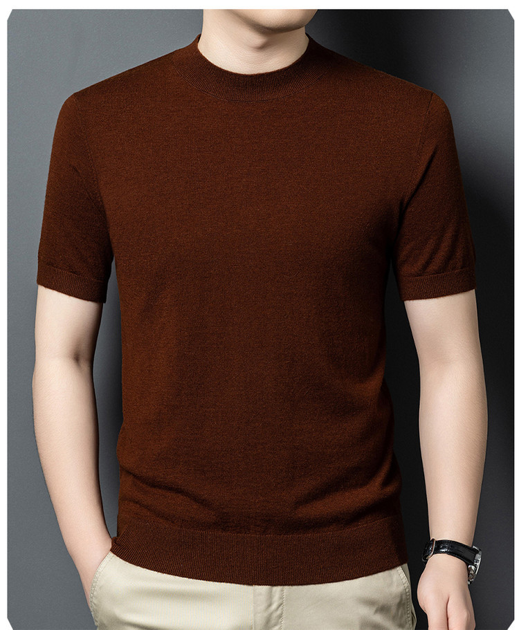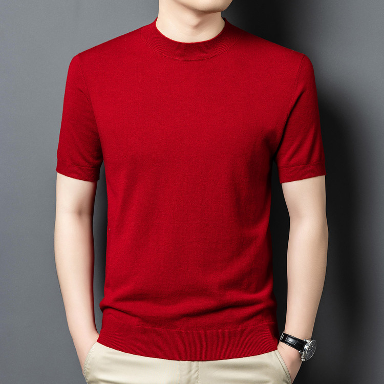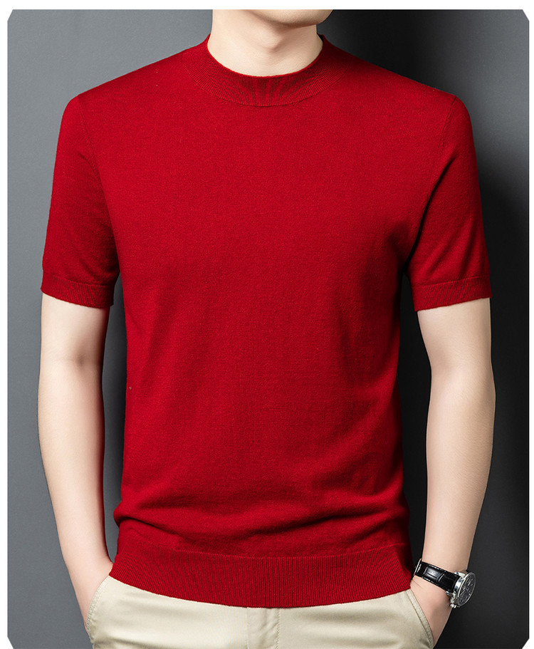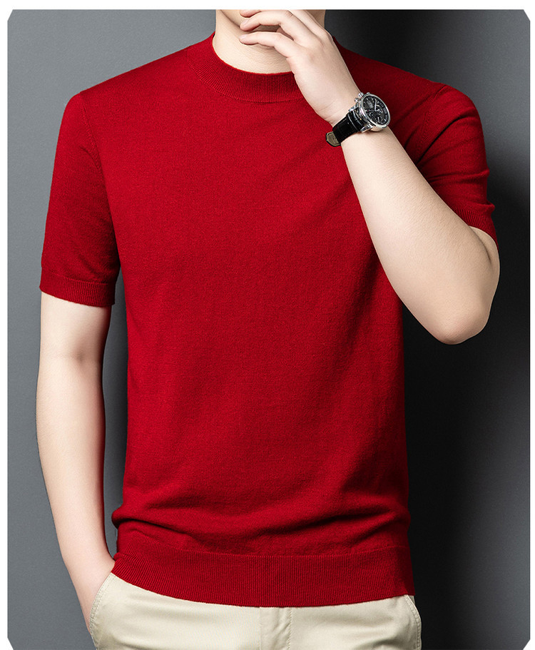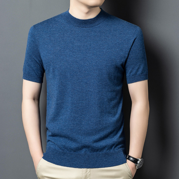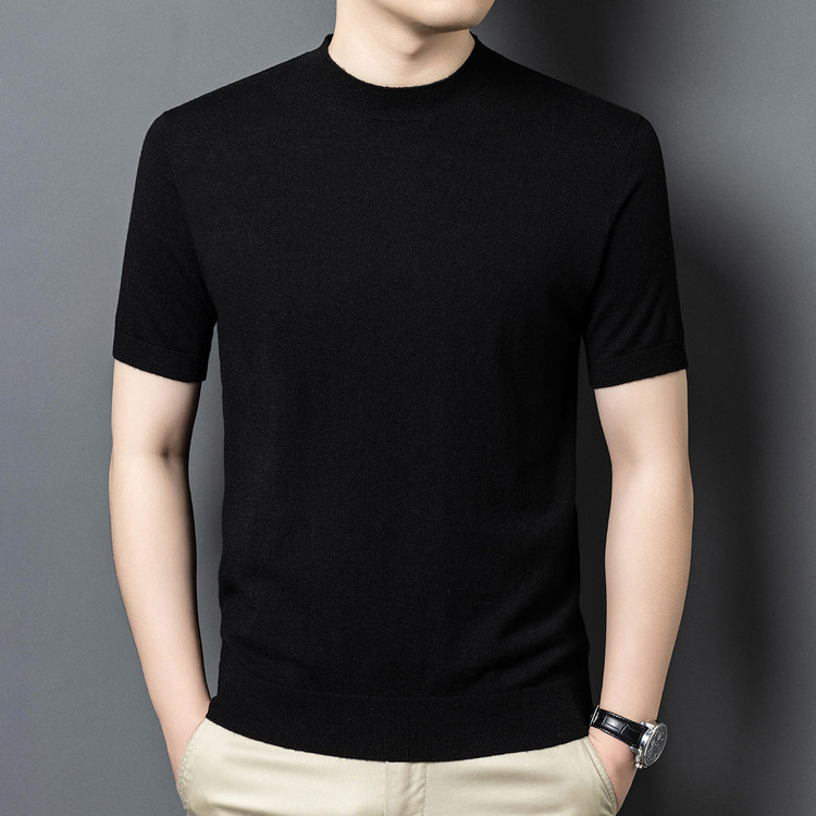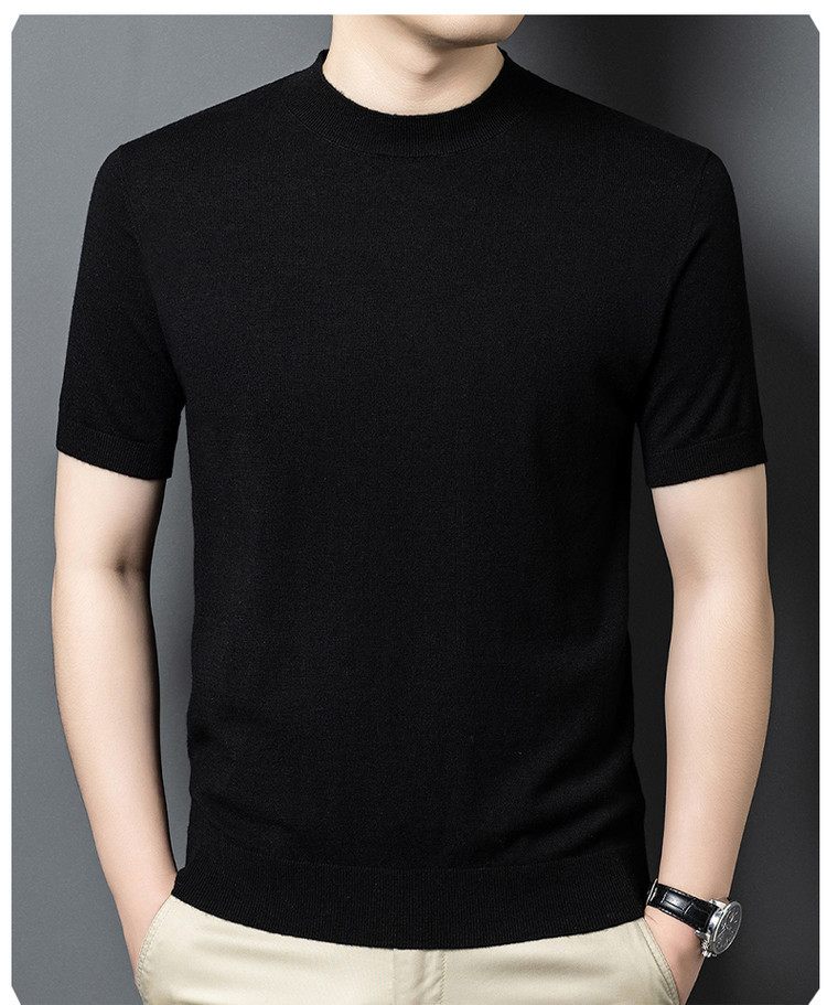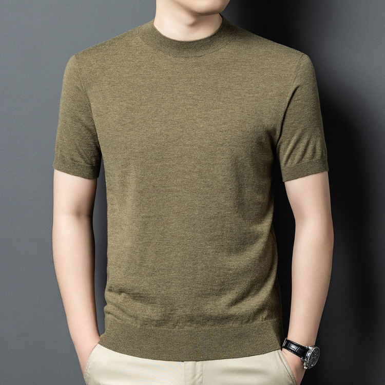 울 스웨터 남성용 100% 양털 니트 베이스 레이어 남성용 반팔 니트 울 스웨터 티셔츠 비즈니스 다용도 단색