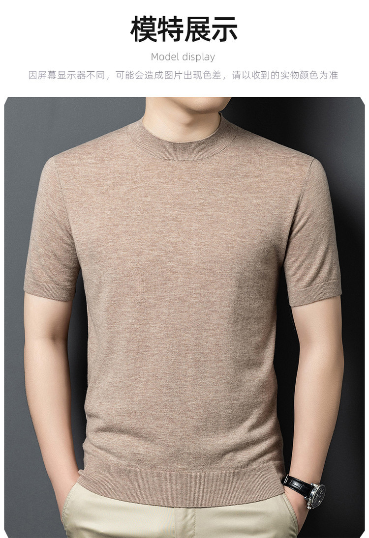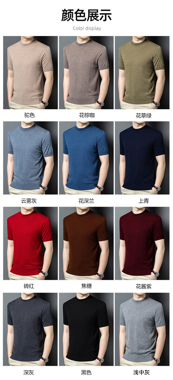 울 스웨터 남성용 100% 양털 니트 베이스 레이어 남성용 반팔 니트 울 스웨터 티셔츠 비즈니스 다용도 단색스토어 가기