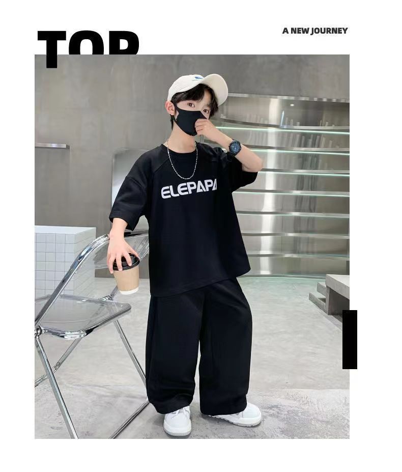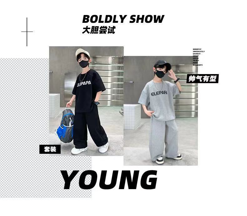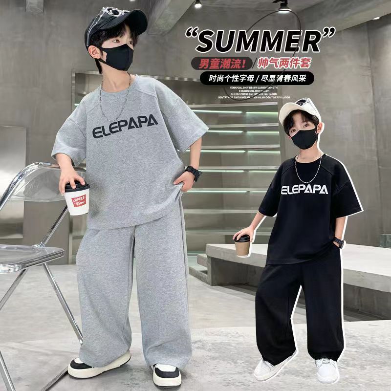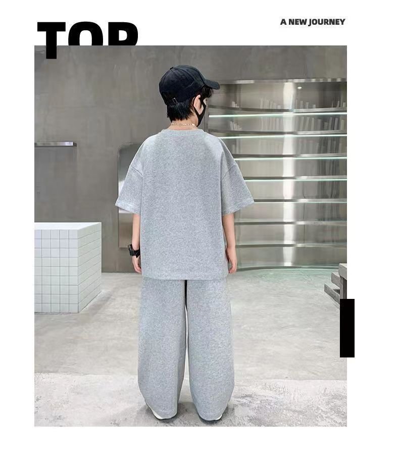 소년 여름 정장 2025 새로운 중대형 어린이 여름 소년 한국 스타일 캐주얼 아동복 투피스 세트 여름 트렌드