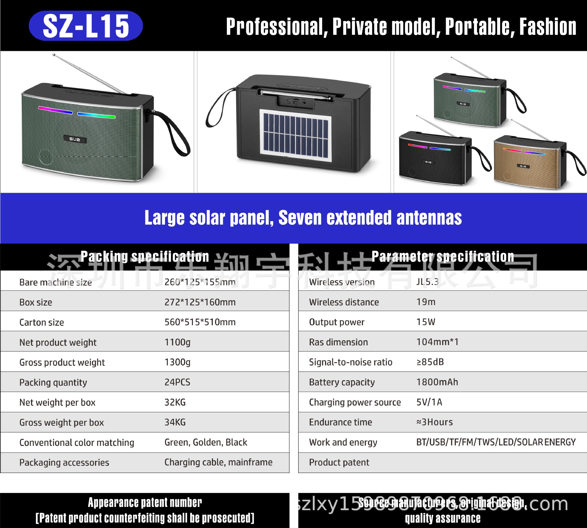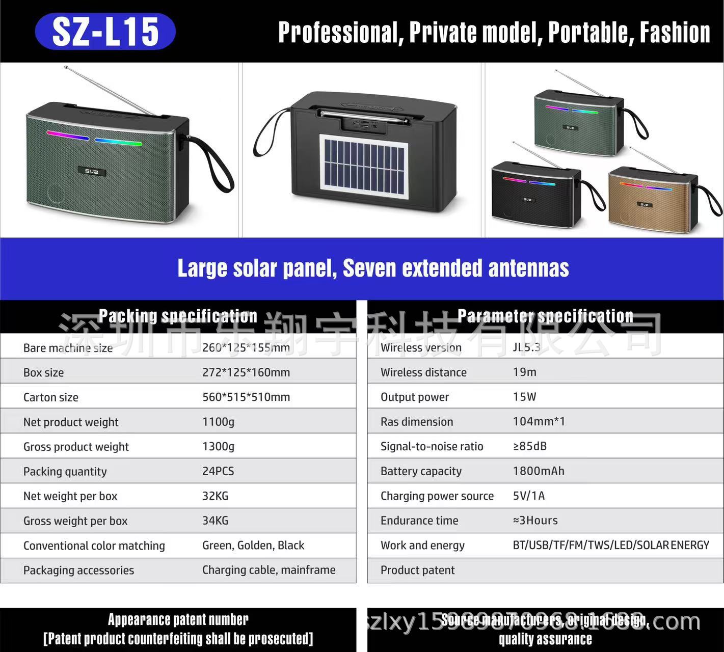 SZ-L15 새로운 아프리카 및 남미 핫 판매 태양 전지 패널 충전 무선 블루투스 스피커 서브 우퍼 라디오 사운드