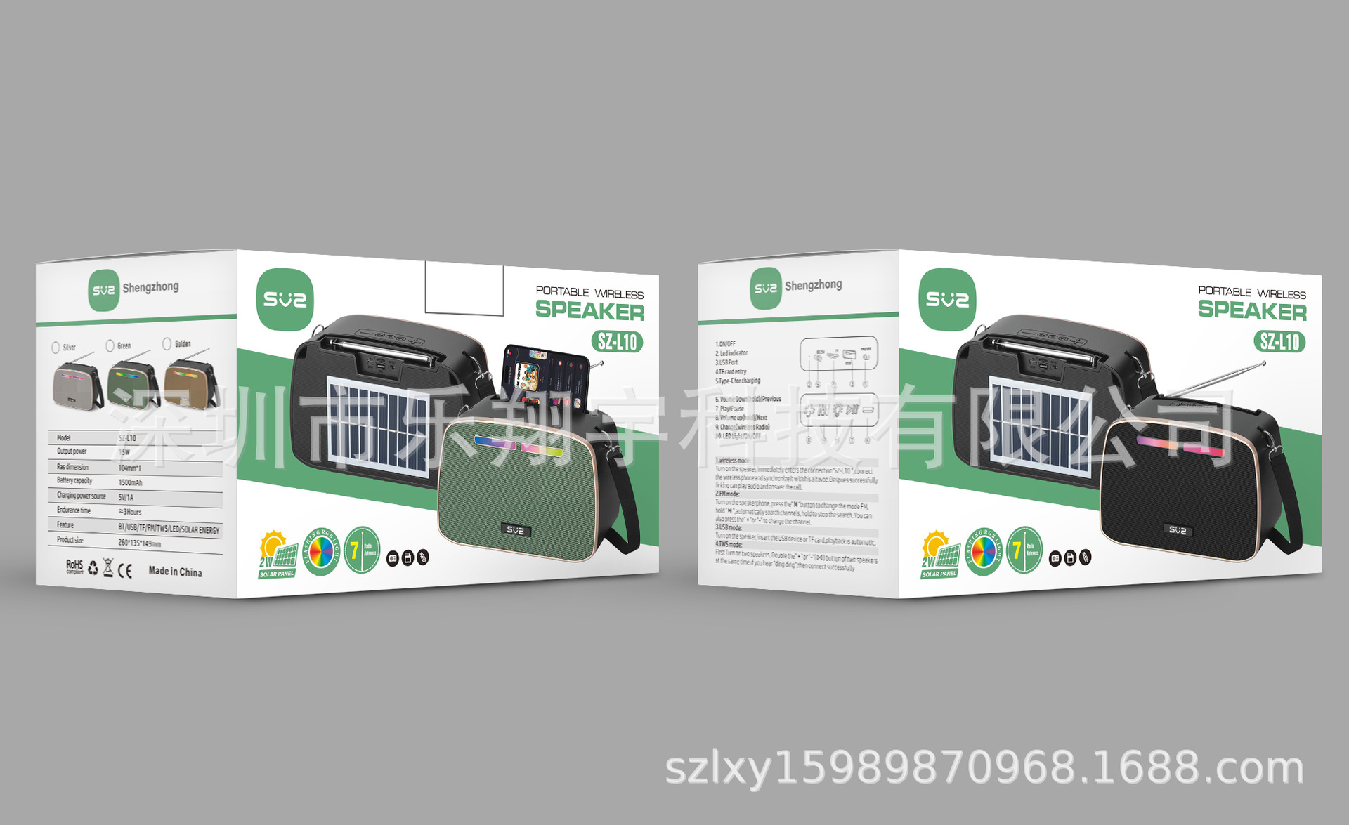 SZ-L10 새로운 아프리카 및 남미 핫 판매 태양 전지 패널 충전 무선 블루투스 스피커 서브 우퍼 라디오 사운드스토어 가기