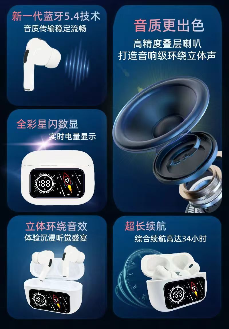 新款智能降噪屏显a11pro无线蓝牙耳机华强北耳机运动手机平板通用
