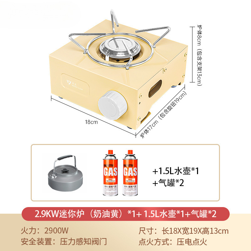 • 미니스토브 - 크림옐로우 + 1.5L 주전자 (가스 2병 포함)