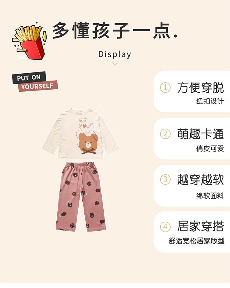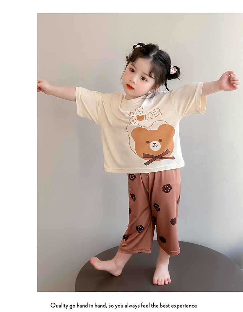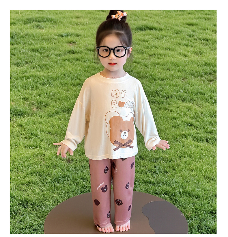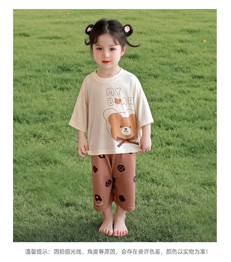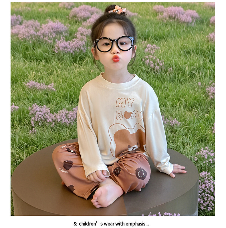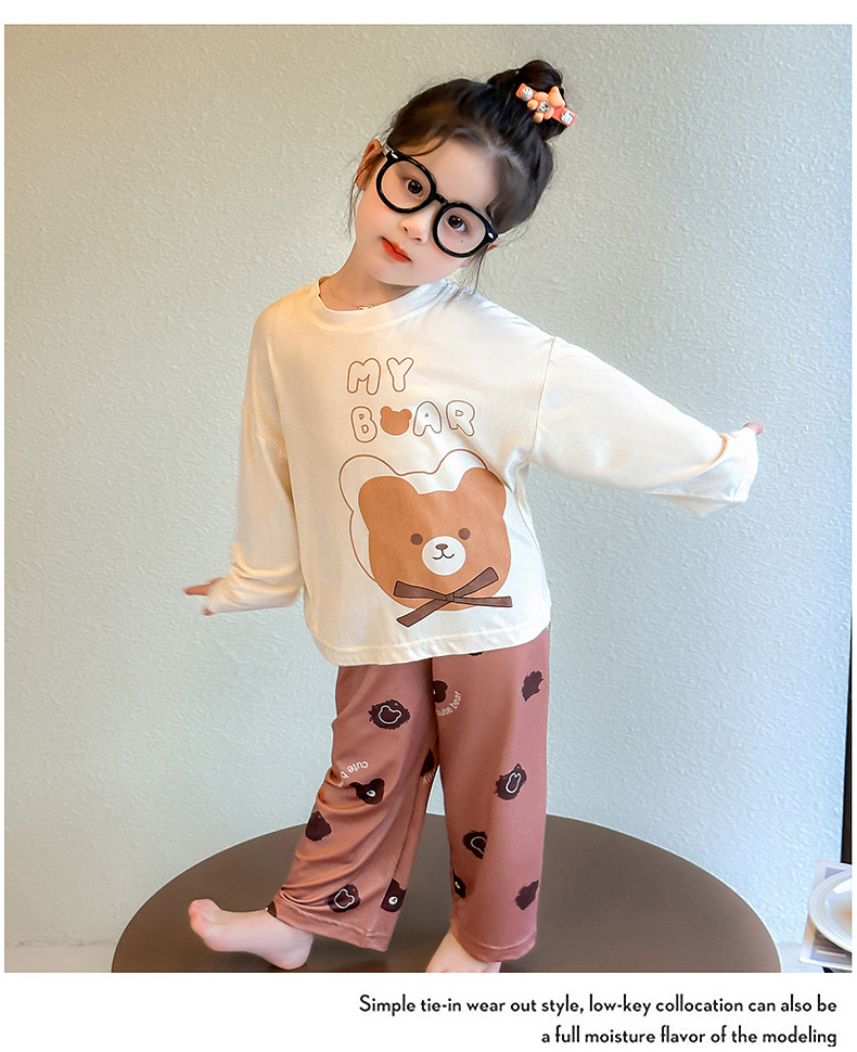 여아 잠옷 투피스 세트 봄 여름 얇은 스타일 2026년 신상 여아 반팔 만화 곰돌이 세트 홈웨어