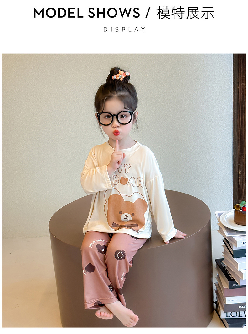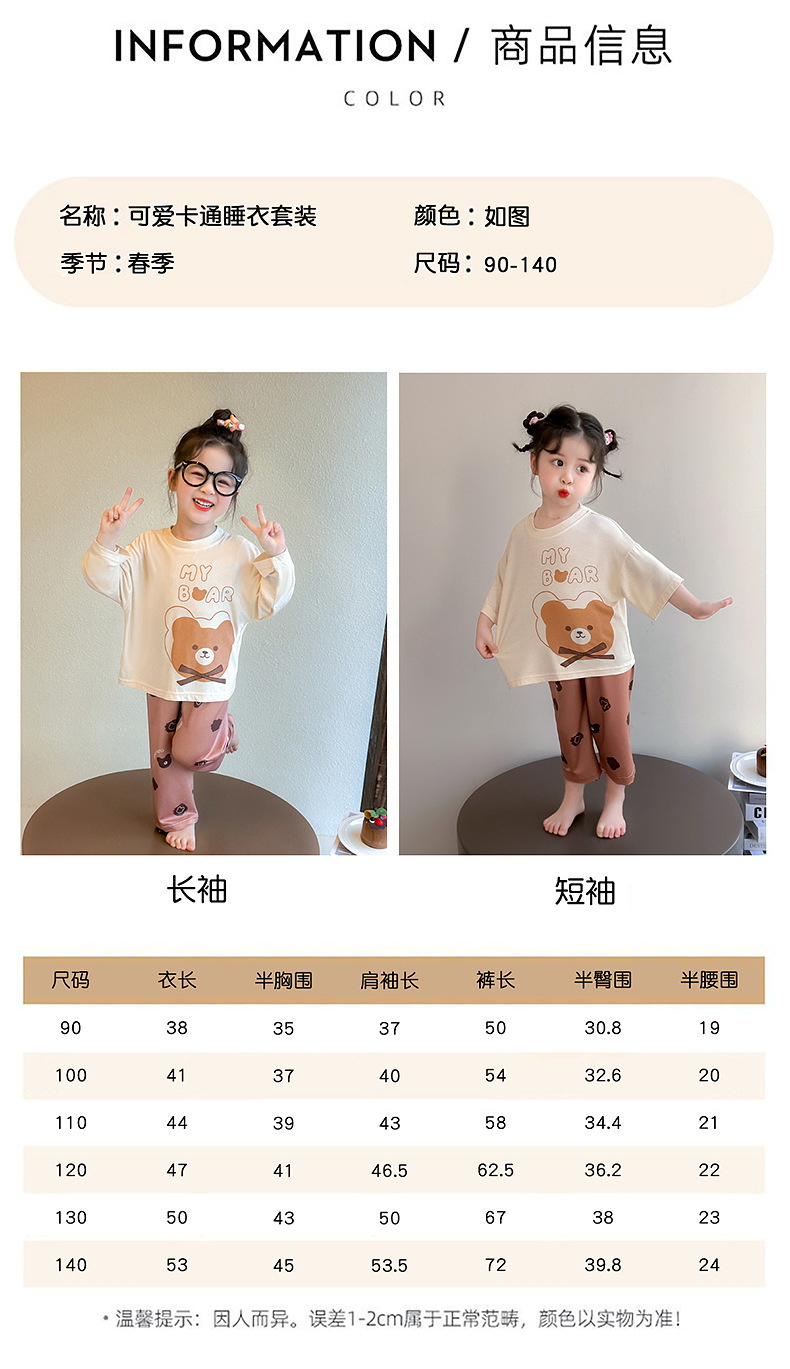 여아 잠옷 투피스 세트 봄 여름 얇은 스타일 2026년 신상 여아 반팔 만화 곰돌이 세트 홈웨어스토어 가기