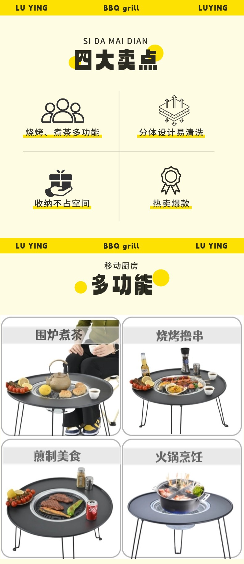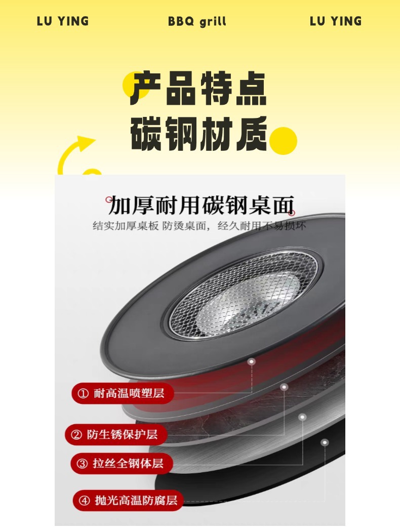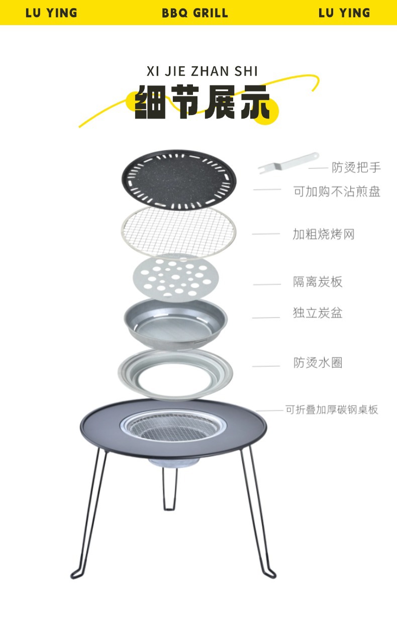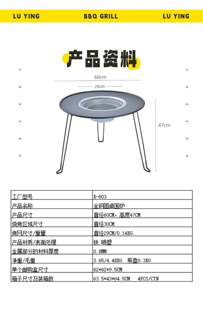 • 0.8MM 두꺼운 탄소강 원형 스토브 테이블과 프라이팬 세트